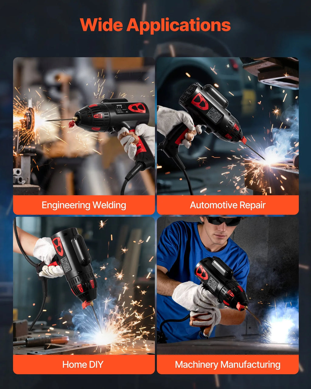 Spēcīga jauda: Šis VEVOR pārnēsājamais rokas metināšanas aparāts nodrošina 20 - 130 ampēru metināšanas jaudu ar bezpakāpju strāvas regulēšanu un digitālo displeju, kas ļauj precīzi kontrolēt dažādus metināšanas darbus. Piemērots dzelzs un tērauda materiālu metināšanai (maksimālais metināšanas biezums: 3 mm).