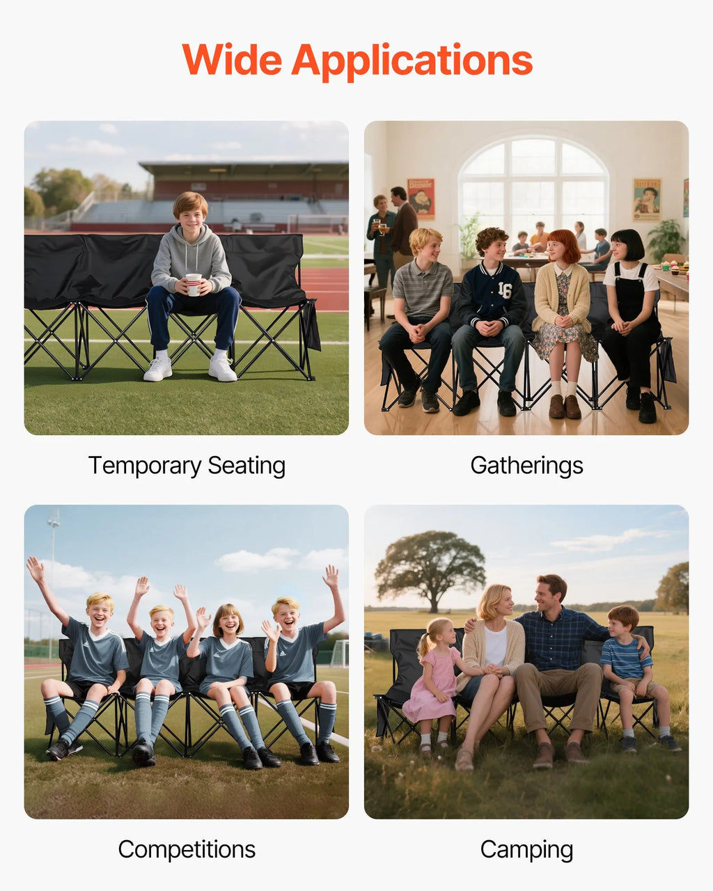 Plašs pielietojums: Šis pārnēsājamais salokāmais sporta soliņš ir piemērots visu vecumu lietotājiem. Sporta pasākumos, piemēram, futbolā vai basketbolā, tas nodrošina atpūtas vietu spēlētājiem, kā arī ir piemērots āra aktivitātēm, ceļošanai un kempingam.