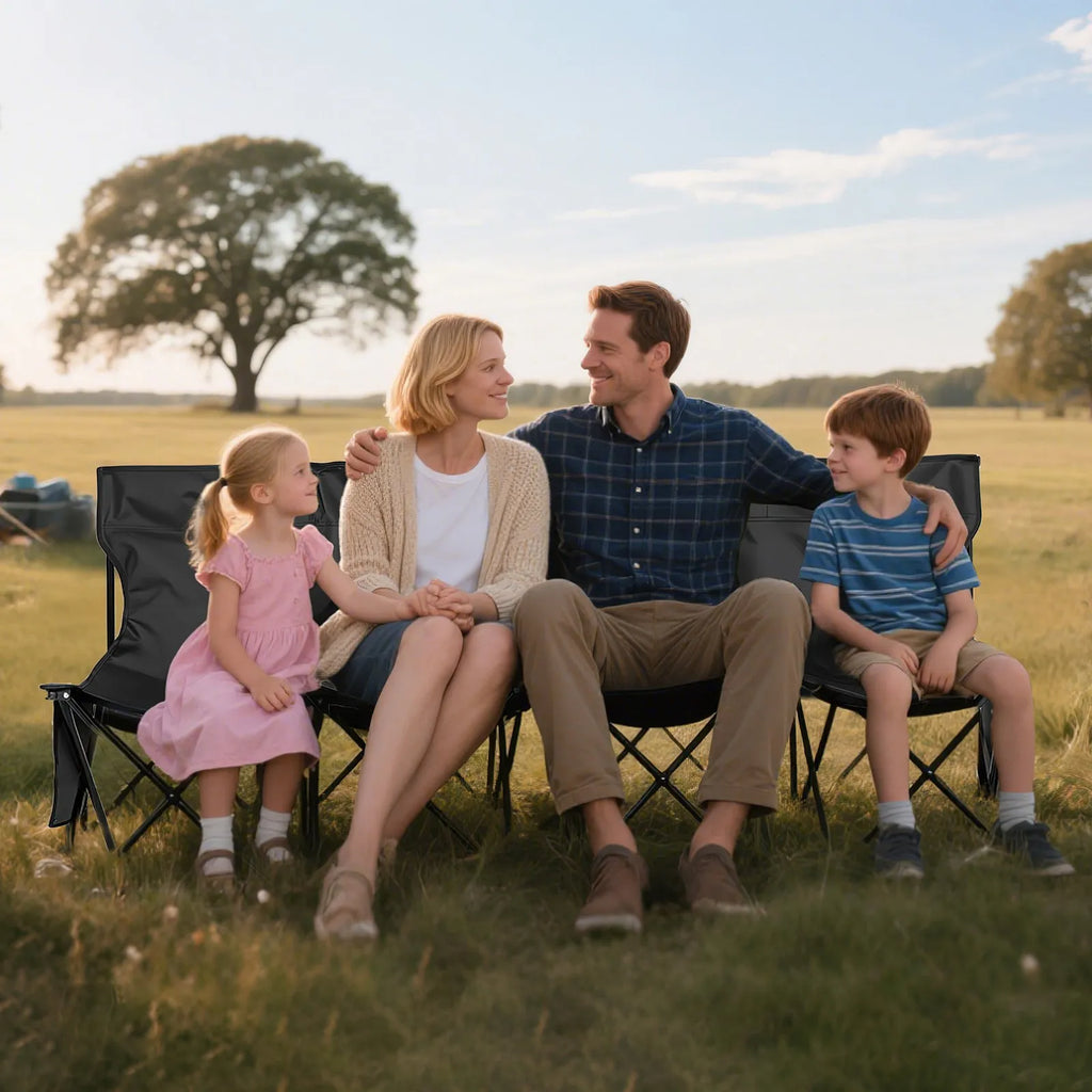 Ērta sēdvieta: Šis 1610 × 450 × 820 mm pārnēsājamais salokāmais soliņš 4 personām ir viegls un kompakts, aprīkots ar atzveltni un paplašinātu sēdvietu ērtai lietošanai. Montāža nav nepieciešama — izņemiet no iepakojuma un lietojiet uzreiz.