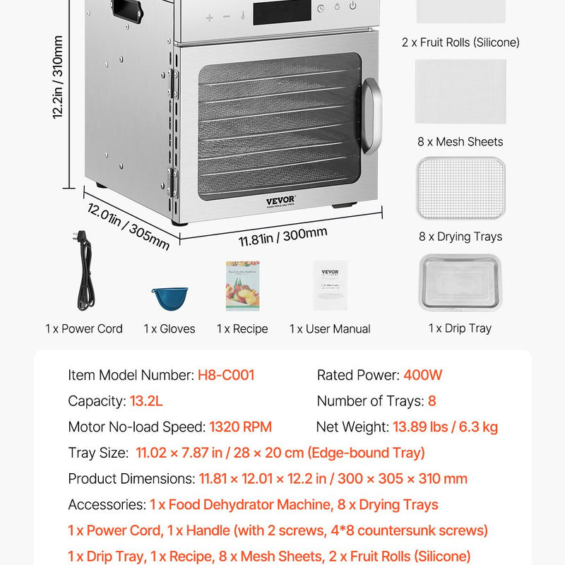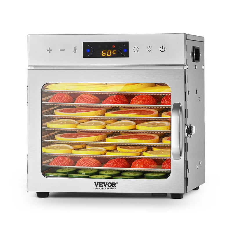 Lielā žāvētāja konstrukcija ļauj vienlaikus izvietot līdz 8 slāņiem pārtikas, nodrošinot liela apjoma žāvēšanu vienā reizē. Digitālais vadības panelis ar regulējamu temperatūru no 30 °C līdz 90 °C un 24 stundu taimeri nodrošina pilnībā automatizētu darbību bez nepieciešamības to uzraudzīt. Ideāli piemērots augļu, dārzeņu, žāvētās gaļas, garšaugu, tēju un jūras velšu žāvēšanai.