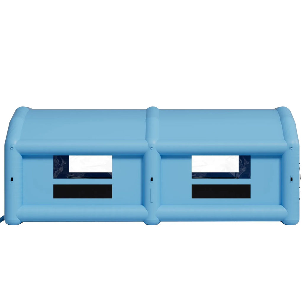 Mūsu piepūšamā krāsošanas kabīne ir aprīkota ar speciālu augšējo gaisa ieplūdi un lieliem sānu filtru spilventiņiem, kas nodrošina nepārtrauktu tīra gaisa plūsmu no augšas uz leju. Tā bloķē putekļu iekļūšanu un uztur stabilu vidi augstas kvalitātes krāsošanai un tīrākam gaisam.