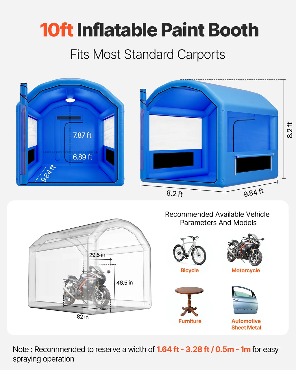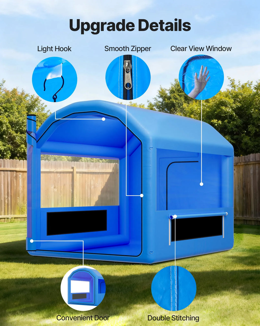 VEVOR piepūšamā krāsošanas kabīne, 3 × 2,5 × 2,5 m, piepūšamā krāsošanas kabīne ar 550 W jaudīgu gaisa pūtēju un gaisa filtrācijas sistēmu, apaļš jumts, paredzēta velosipēdu, motociklu un automobiļu virsbūves metāla detaļu krāsošanai.