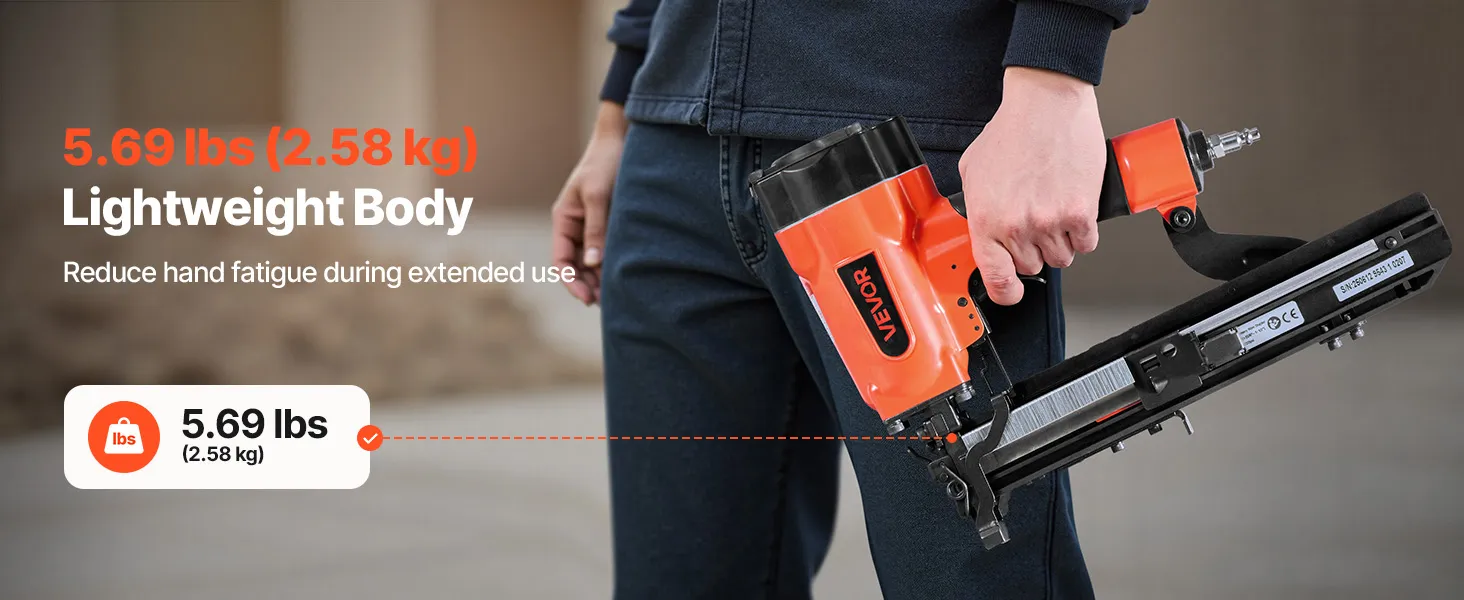 Kompaktā un vieglā konstrukcija ļauj ērti darboties ar vienu roku. Neslīdošais gumijas rokturis nodrošina drošu satvērienu un samazina roku nogurumu ilgstošas lietošanas laikā.