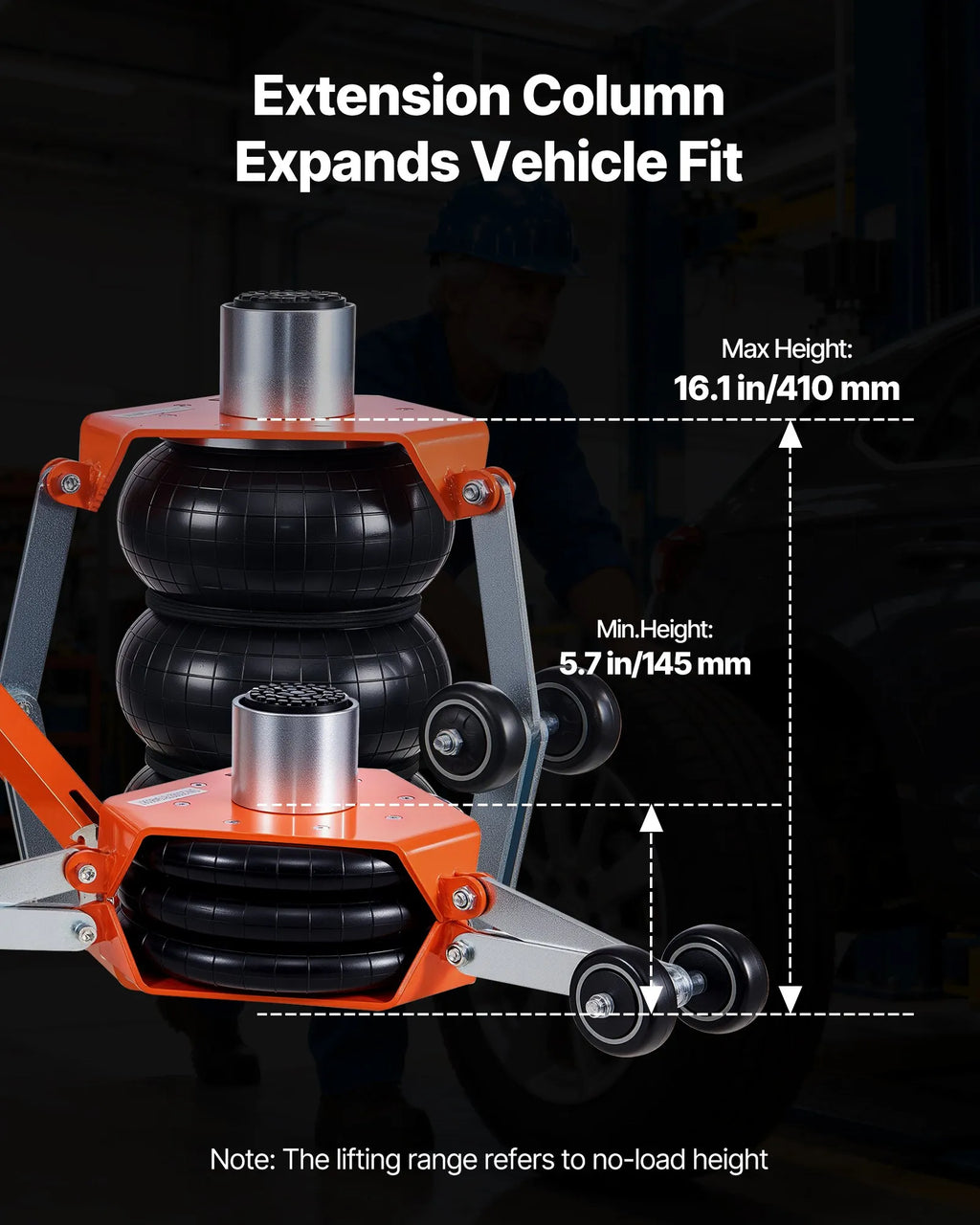 VEVOR pneimatiskais domkrats, 3 t trīskāršs gaisa spilvenu domkrats ar atbalsta stieni, pacelšanas augstums līdz 470 mm ar paaugstinātu kolonnu un regulējamu rokturi, 1–6 s ātra pneimatiskā pacelšana automobiļu, apvidus auto un pikapu remontam