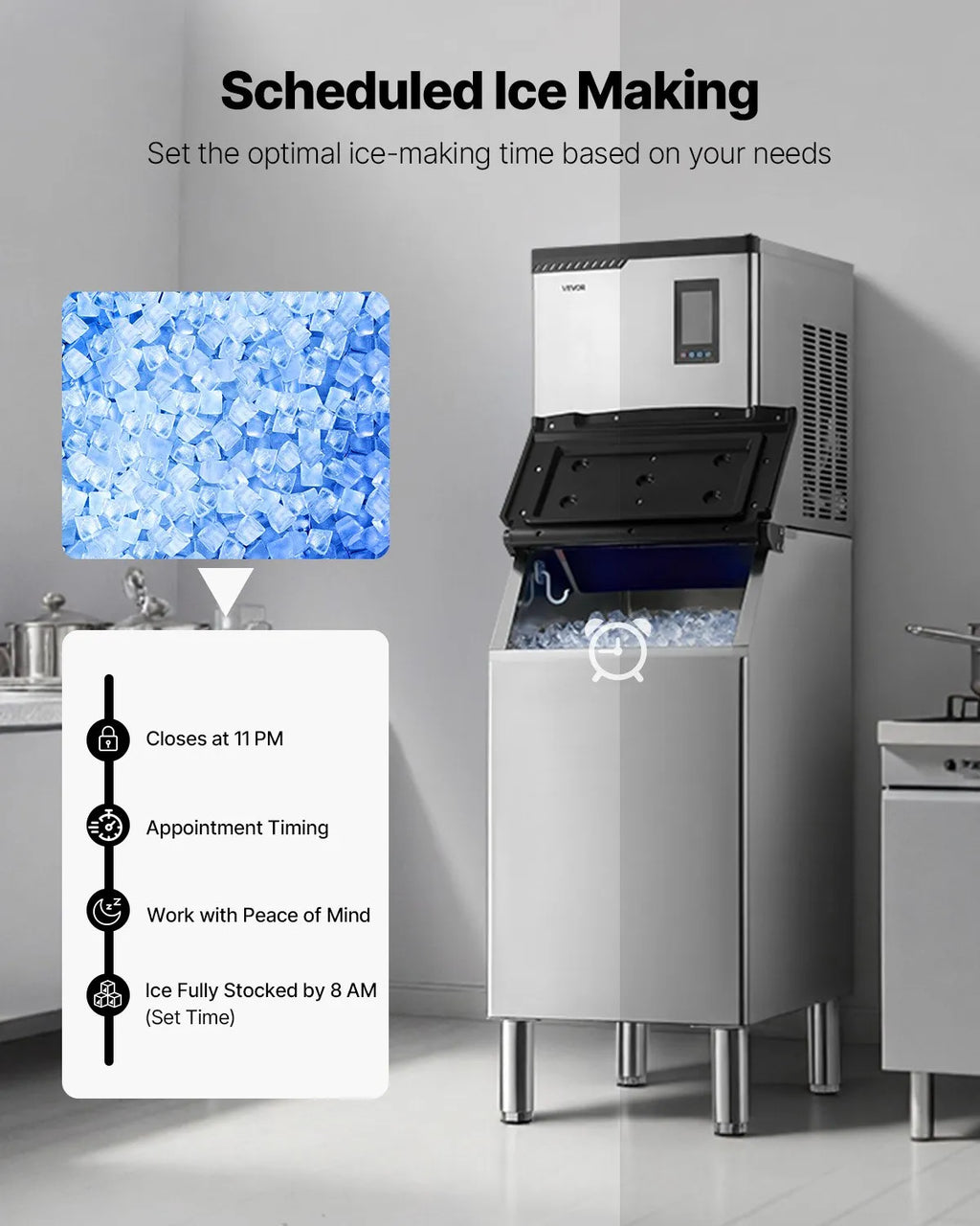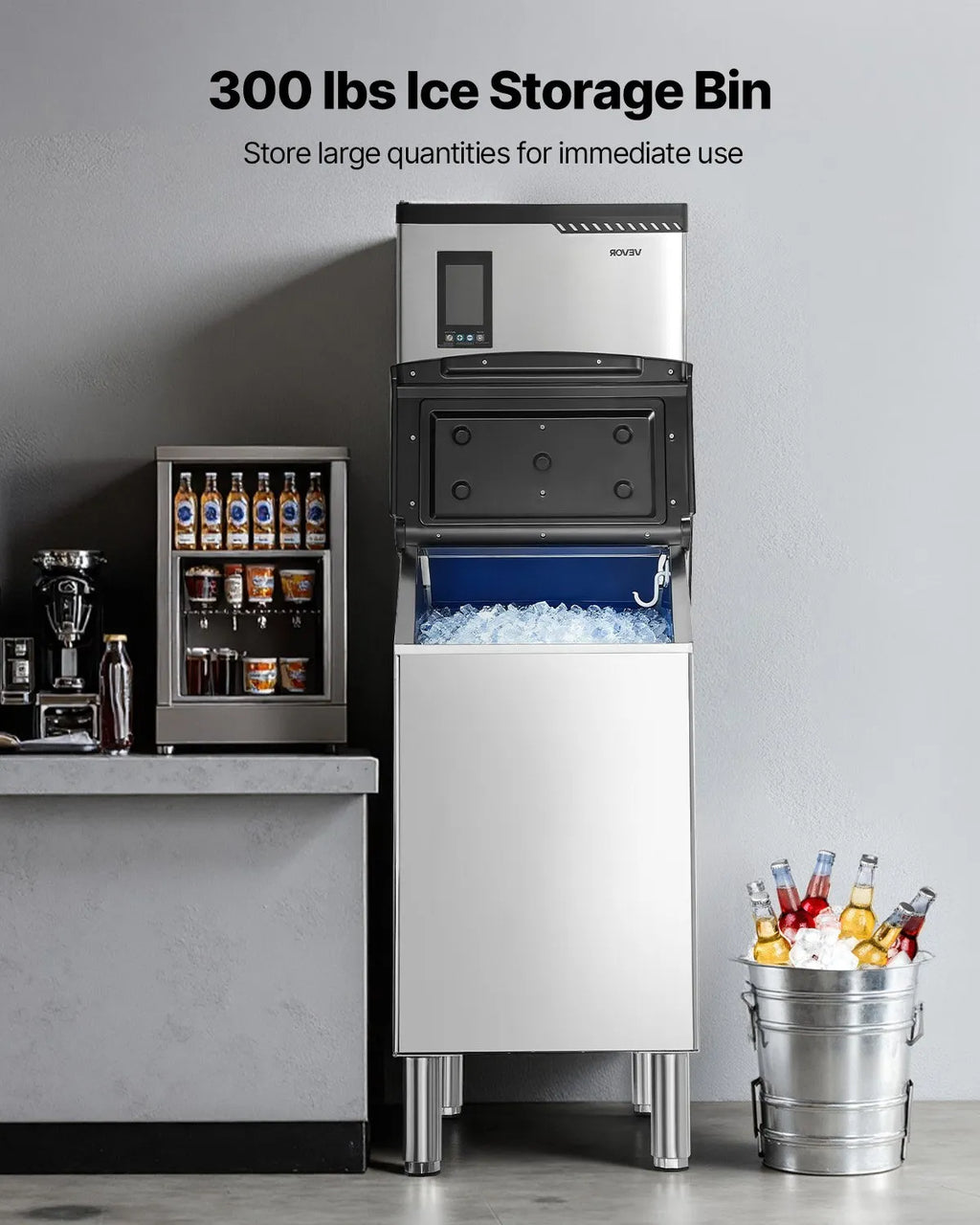VEVOR profesionāls ledus ģenerators, 136 kg/24 h ledus ražošana, nerūsējošā tērauda uzglabāšanas tvertne 136 kg, automātiska pašattīrīšanās, skārienekrāns, piemērots bāriem, kafejnīcām un restorāniem