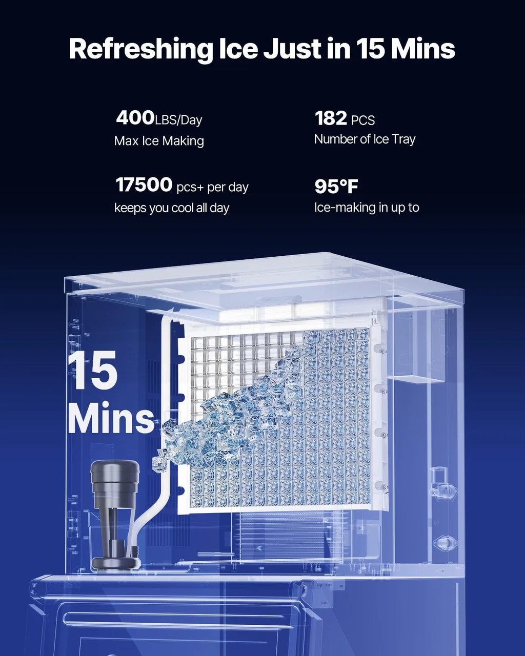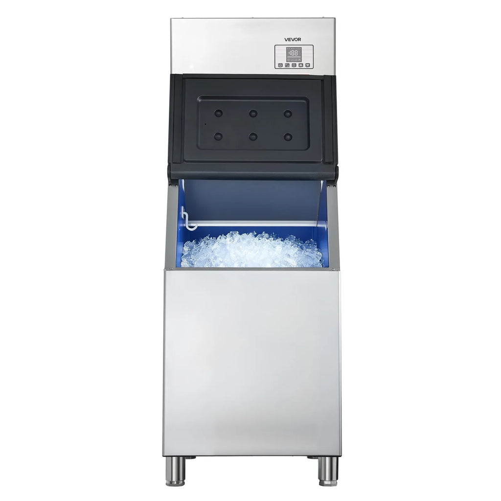 VEVOR profesionāls ledus ģenerators, ledus ražošana 181 kg/24 h, nerūsējošā tērauda uzglabāšanas tvertne 136 kg, automātiska pašattīrīšanās, skārienekrāns, paredzēts bāriem, kafejnīcām un restorāniem