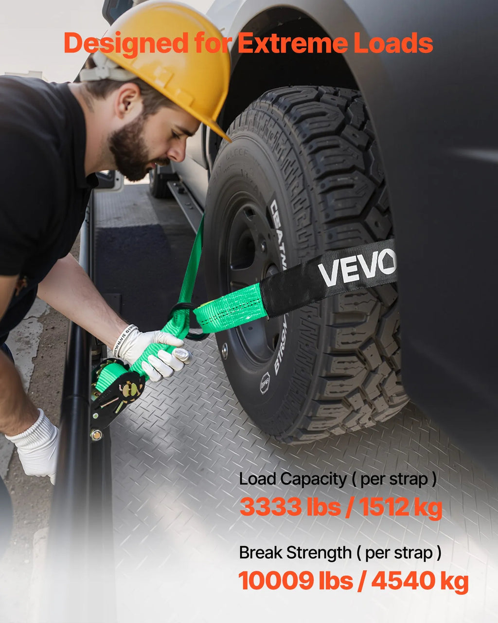 Izgatavota no augstas izturības siksnas, kas nodrošina 1512 kg darba slodzi un 4540 kg pārrāvuma slodzi. Konstrukcija paredzēta maksimālai izturībai, garantējot drošu smagu transportlīdzekļu nostiprināšanu bez atslābšanas vai pārrāvuma riska.