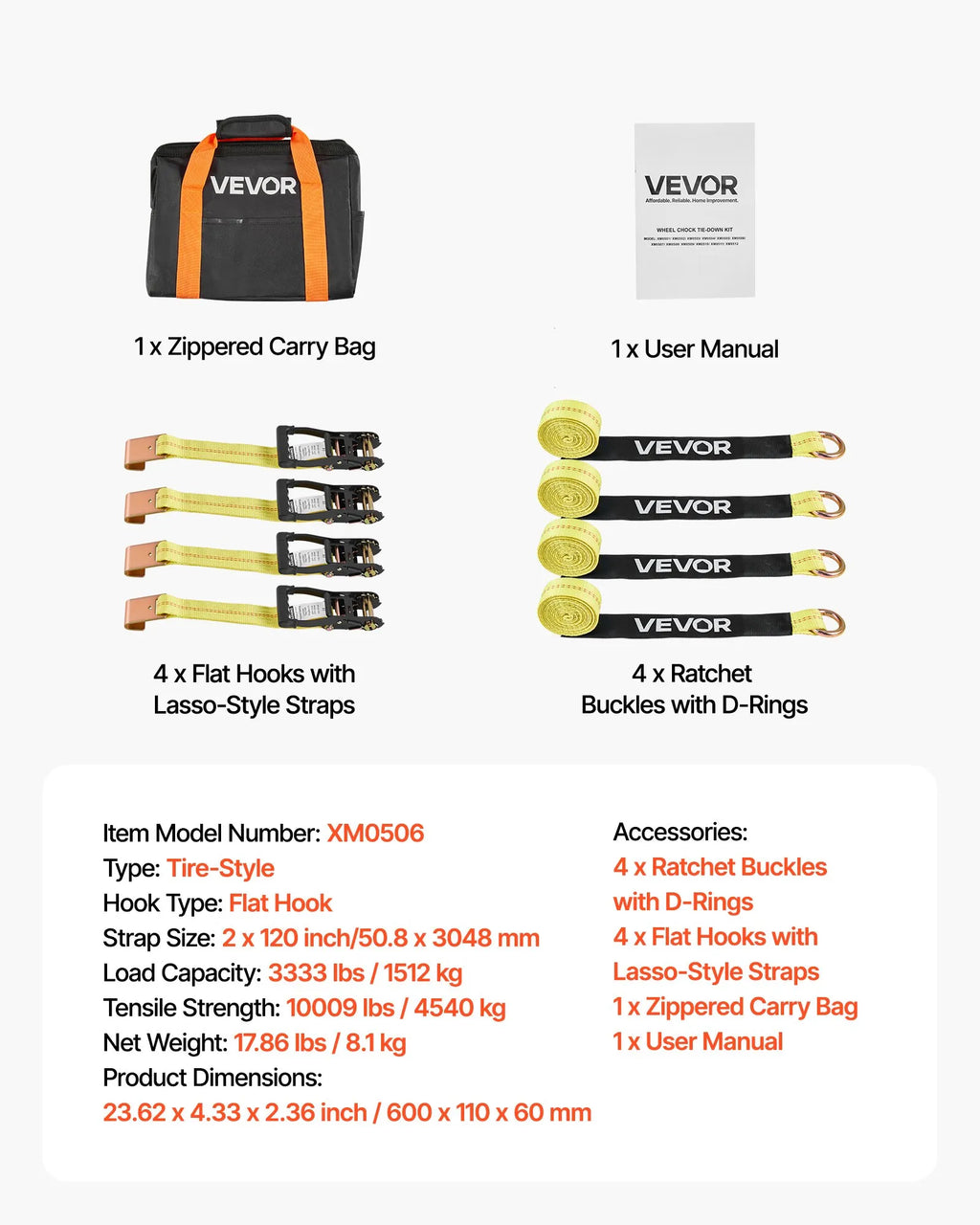 Mūsu riteņu nostiprināšanas komplekts nodrošina ātru un vienkāršu riepas fiksācijas risinājumu, ko var nostiprināt tieši ap riepu. Katra siksna iztur slodzi līdz 1512 kg, droši noturot transportlīdzekli vietā transportēšanas vai novietošanas laikā.