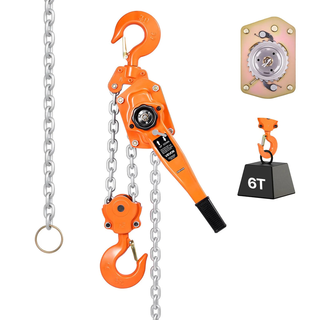 VEVOR rokas ķēdes pacēlājs 6 t (6000 kg) ar 3 m G80 tērauda ķēdi, dubulto sprūdrata mehānisko bremzi un 360° rotējošiem āķiem noliktavām, būvniecībai un garāžām