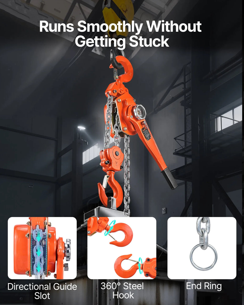 VEVOR rokas sviras ķēdes pacēlājs, 6000 kg kravnesība, 6 m pacelšanas augstums, G80 sakausējuma tērauda ķēde, dubultklikšķa mehāniskā bremze un 360° rotējoši āķi, piemērots noliktavām, būvniecībai un garāžām