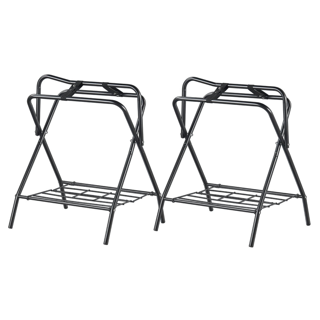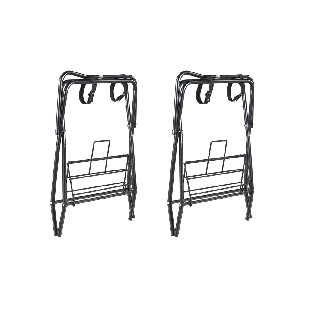 VEVOR salokāms seglu statīvs, 71 × 48 × 95 cm, 2 gab. brīvi stāvoši tērauda seglu turētāji angļu un rietumu tipa segliem, ar segu turētāju, melni