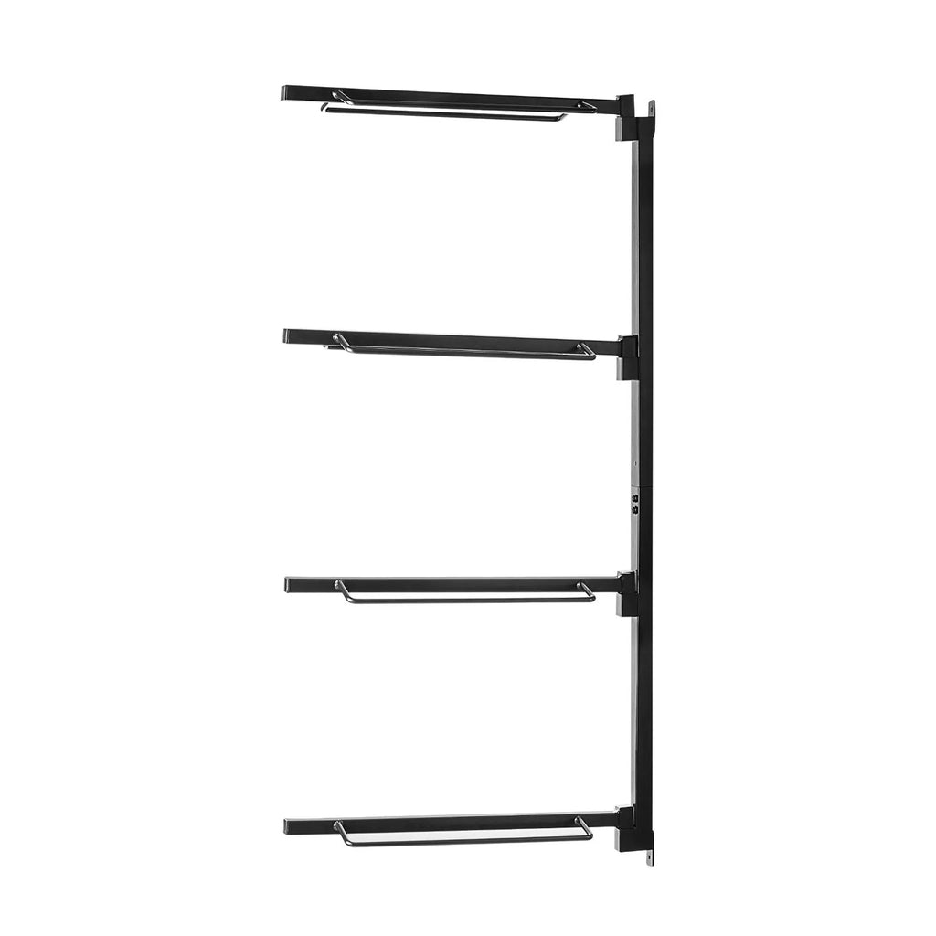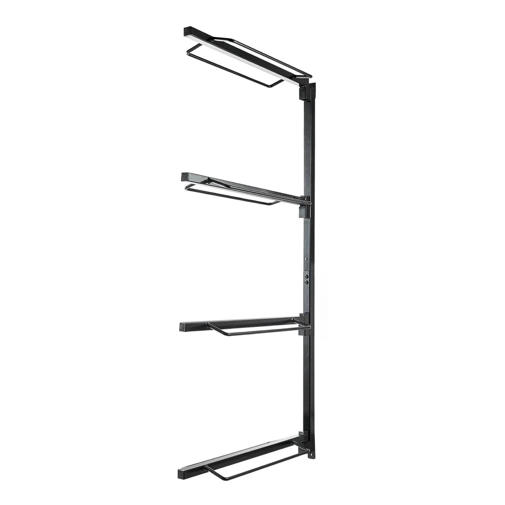 Plaša uzglabāšanas vieta: Četrpakāpju ārējais dizains nodrošina ļoti lielu glabāšanas ietilpību. Grozāmā konstrukcija ļauj viegli piekļūt segliem un mainīt novietojuma leņķi, vienlaikus ietaupot vietu — ērta un praktiska piekļuve jebkurā brīdī.