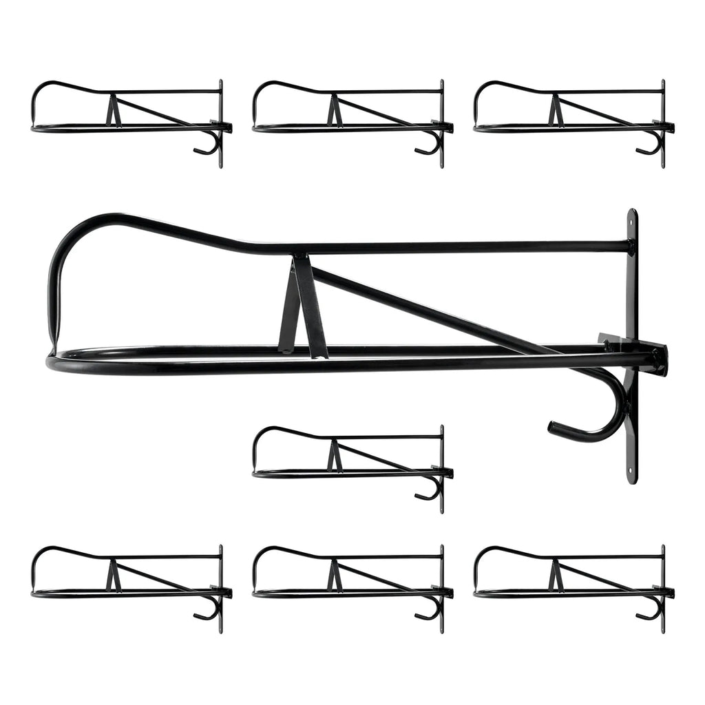 VEVOR sienas seglu statīvs 69 × 41 × 32 cm, 8 gab. komplekts ar paliktņa turētāju, pārnēsājams seglu turētājs angļu un rietumu tipa segliem, jāšanas ekipējuma glabāšanai stallī, dārzā vai jāšanas inventāra telpā, melns