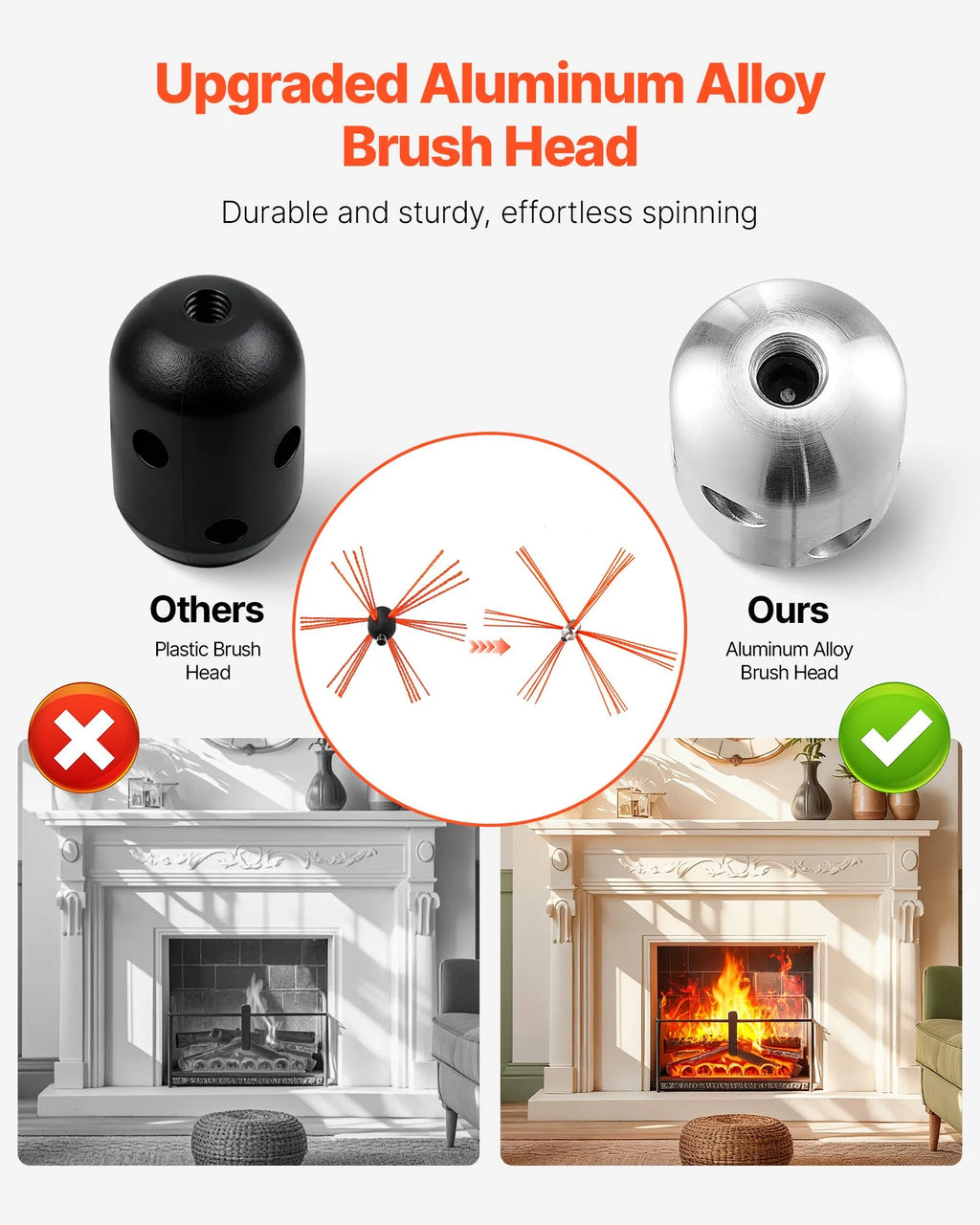 Efektīva un droša tīrīšana: Aprīkots ar plastmasas grozāmo savienotāju, šis skursteņa tīrītājs novērš tiešu stieņa kontaktu, nodrošinot augstāku drošību. Tīrīšanas metode no apakšas uz augšu efektīvi noņem kreozotu un netīrumus, uzlabo kamīna darbības efektivitāti, samazina kurināmā patēriņu un ievērojami mazina ugunsbīstamības risku.