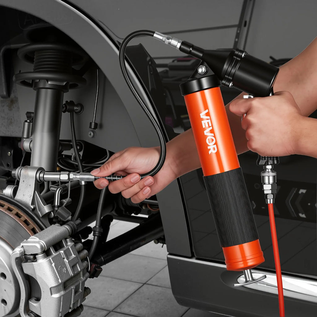 Šī pneimatiskā smērvielas pistole tiek piegādāta ar 2 plakaniem uzgaļiem, liektu caurulīti un 45,7 cm šļūteni, padarot to piemērotu visa veida aprīkojuma eļļošanai — no automobiļiem un lauksaimniecības tehnikas līdz velosipēdiem.