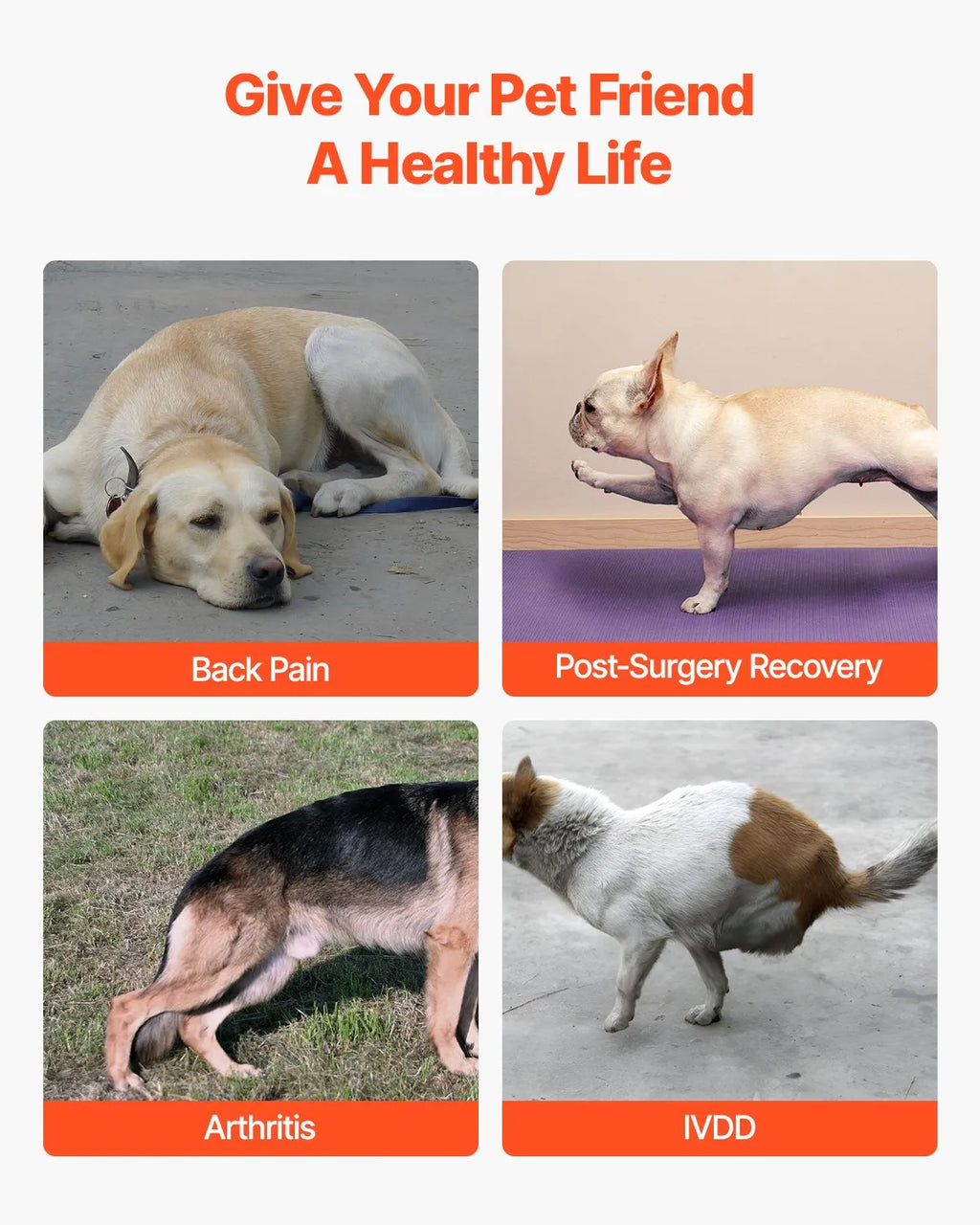 Suņu muguras atbalsts: Paredzēts suņiem ar IVDD, disku trūci un citām mugurkaula locītavu problēmām. Muguras balsts nodrošina stabilizāciju un korekciju, mazina sāpes un veicina atlabšanu pēc operācijas.