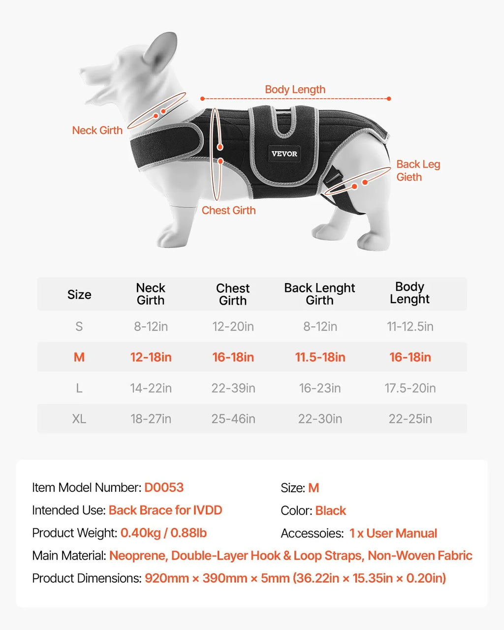 Produkta specifikācija – VEVOR suņu muguras balsts D0053