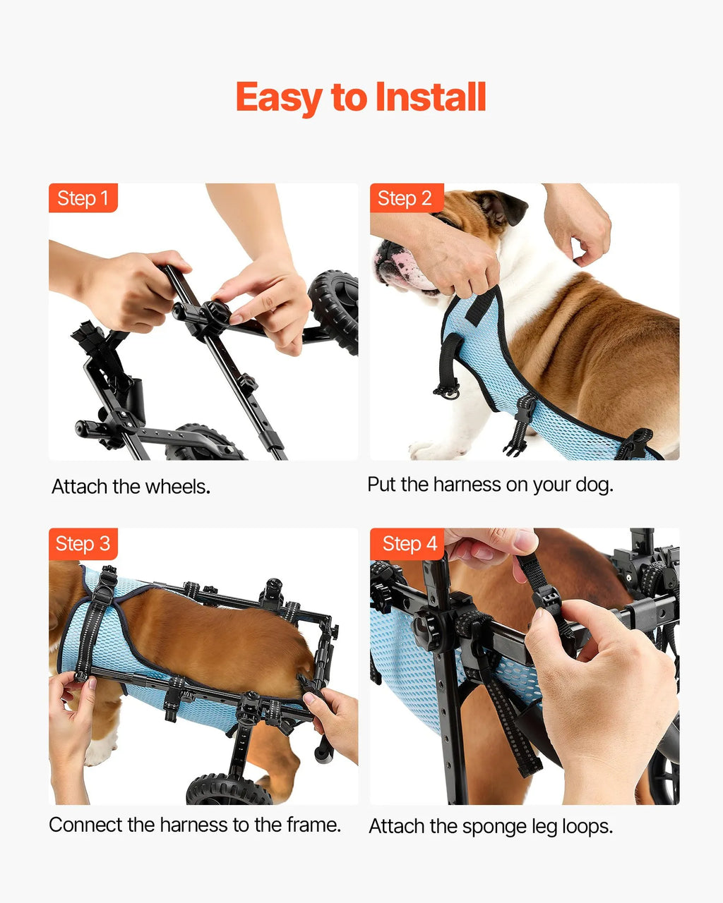 VEVOR suņu ratiņi aizmugurējām kājām, regulējami 2 riteņi, viegls suņu ratiņš ar triecienus absorbējošiem riteņiem, mobilitātes atbalsts invalīdiem un traumētiem suņiem līdz 15 kg, vidēja izmēra suņiem