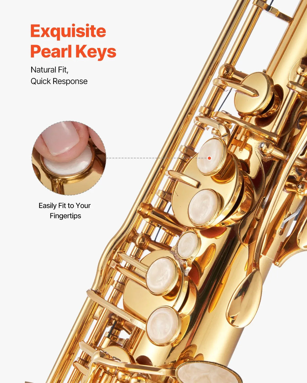 VEVOR tenora saksofons B♭, profesionāls misiņa modelis ar 23 taustiņiem, komplekts iesācējiem ar futlāri, iemuti, siksnām, tīrīšanas drānu un cimdiem, zelta krāsa