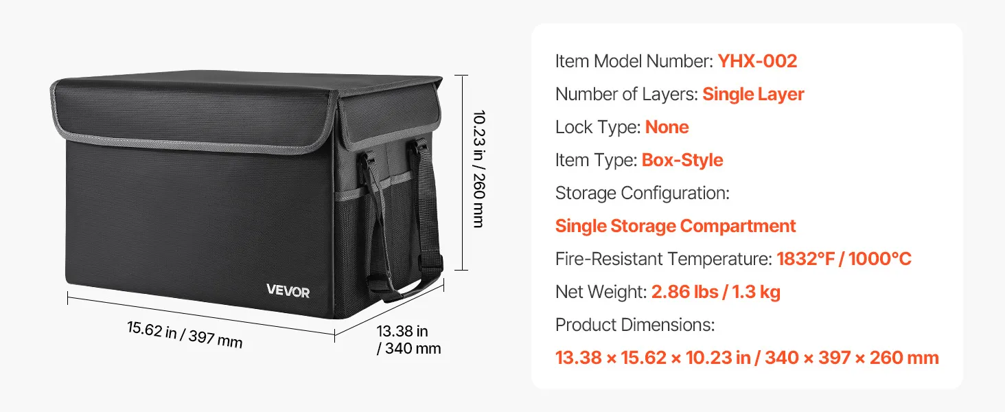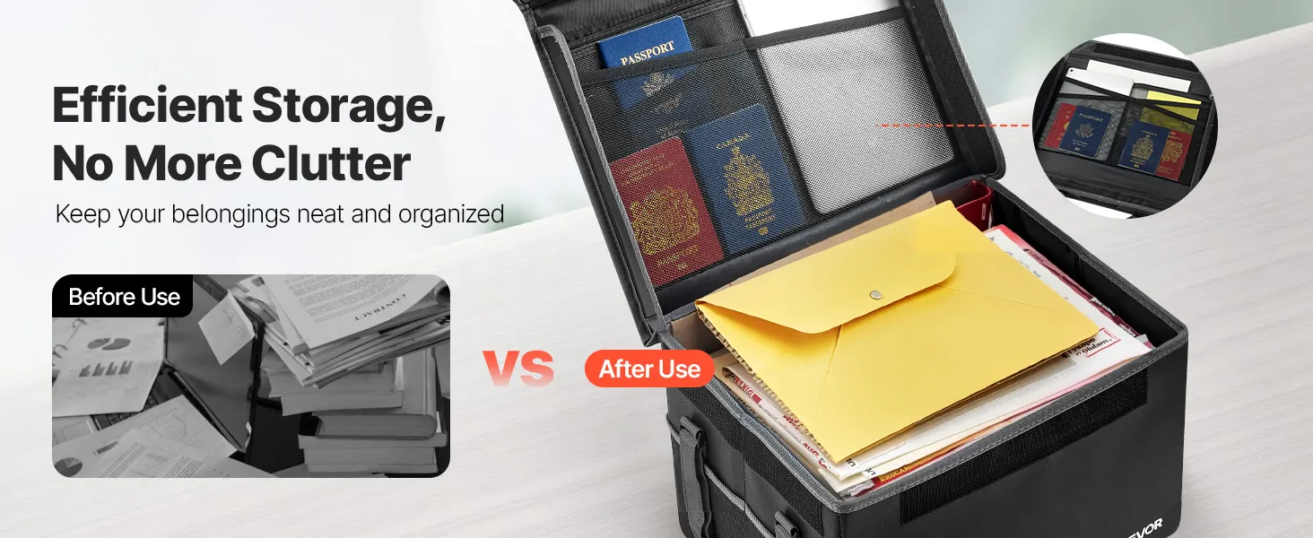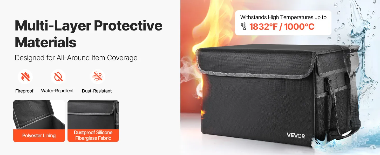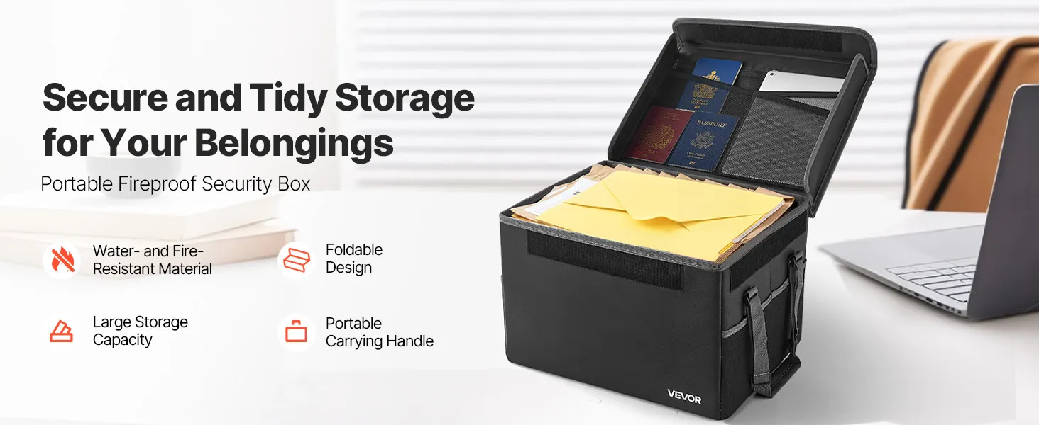VEVOR ugunsdrošs dokumentu seifs, karstumizturīgs līdz 1000 ℃, ūdensdrošs, salokāms un telpu taupošs dizains, pārnēsājams mājām, birojam vai ceļojumiem, piemērots pasēm, svarīgiem dokumentiem un failiem