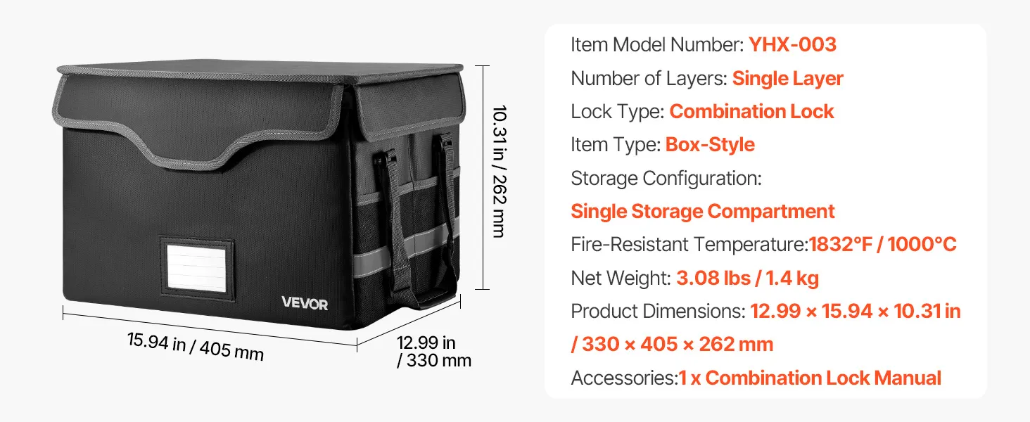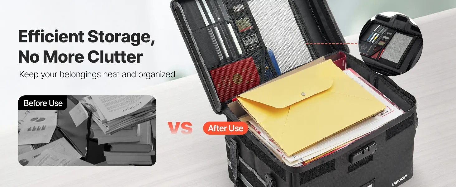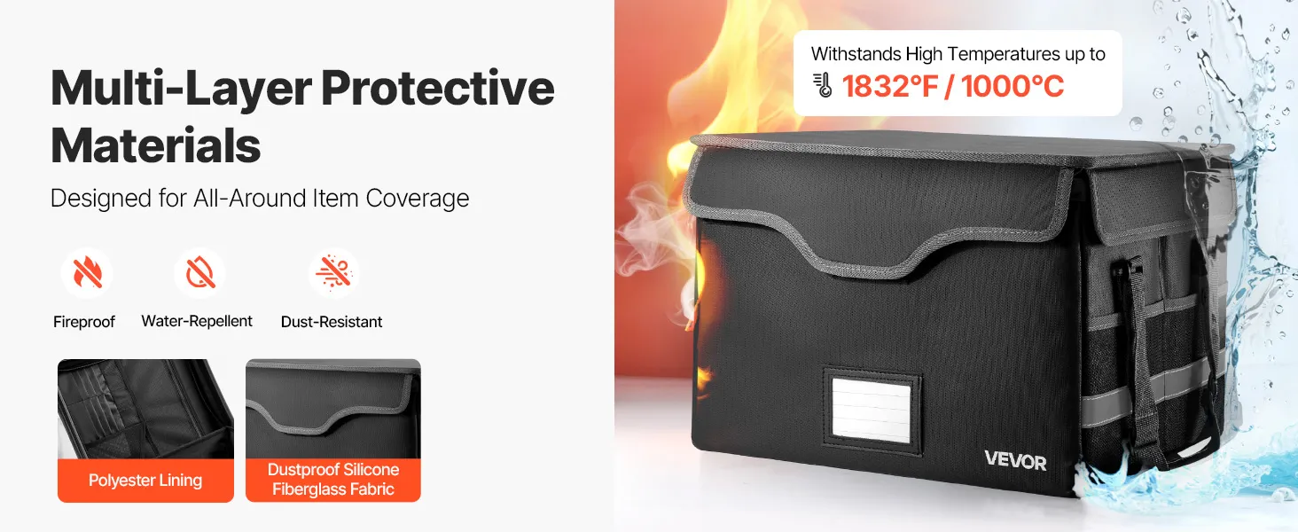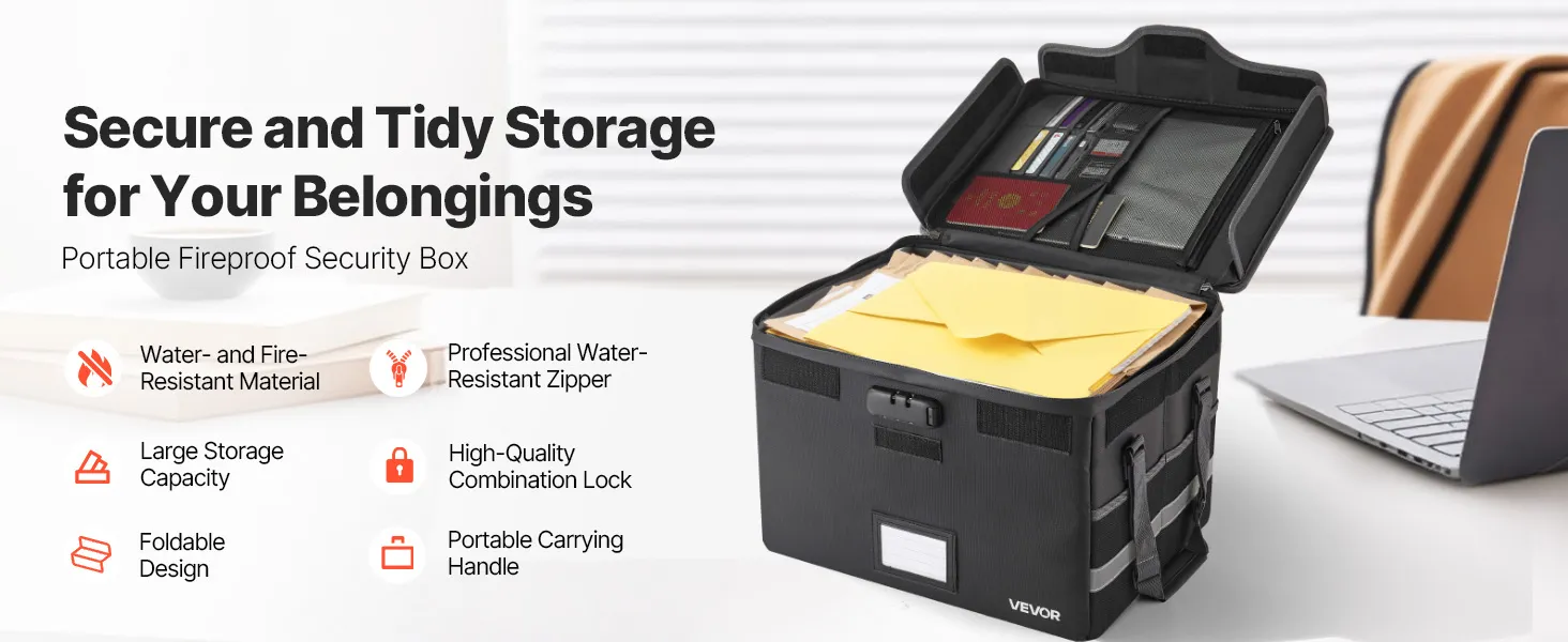 VEVOR ugunsdrošs dokumentu seifs, karstumizturīgs līdz 1000 ℃, uguns- un ūdensdrošs ar slēdzeni, pārnēsājams failu uzglabāšanas un drošības organizators mājām, birojam vai ceļojumiem, piemērots pasēm, svarīgiem dokumentiem un failiem