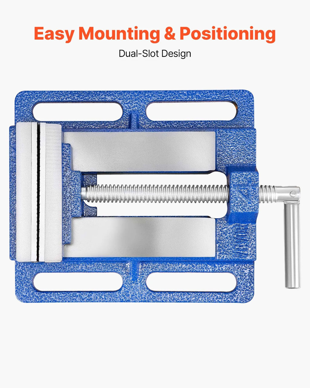 VEVOR urbjpreses skrūvspīles ar 102 mm žokļu platumu, pārnēsājamas darbagalda skrūvspīles ar rievotu pamatni vieglai uzstādīšanai, izturīgs čuguna korpuss, piemērotas kokapstrādei, metālapstrādei, urbšanai un griešanai