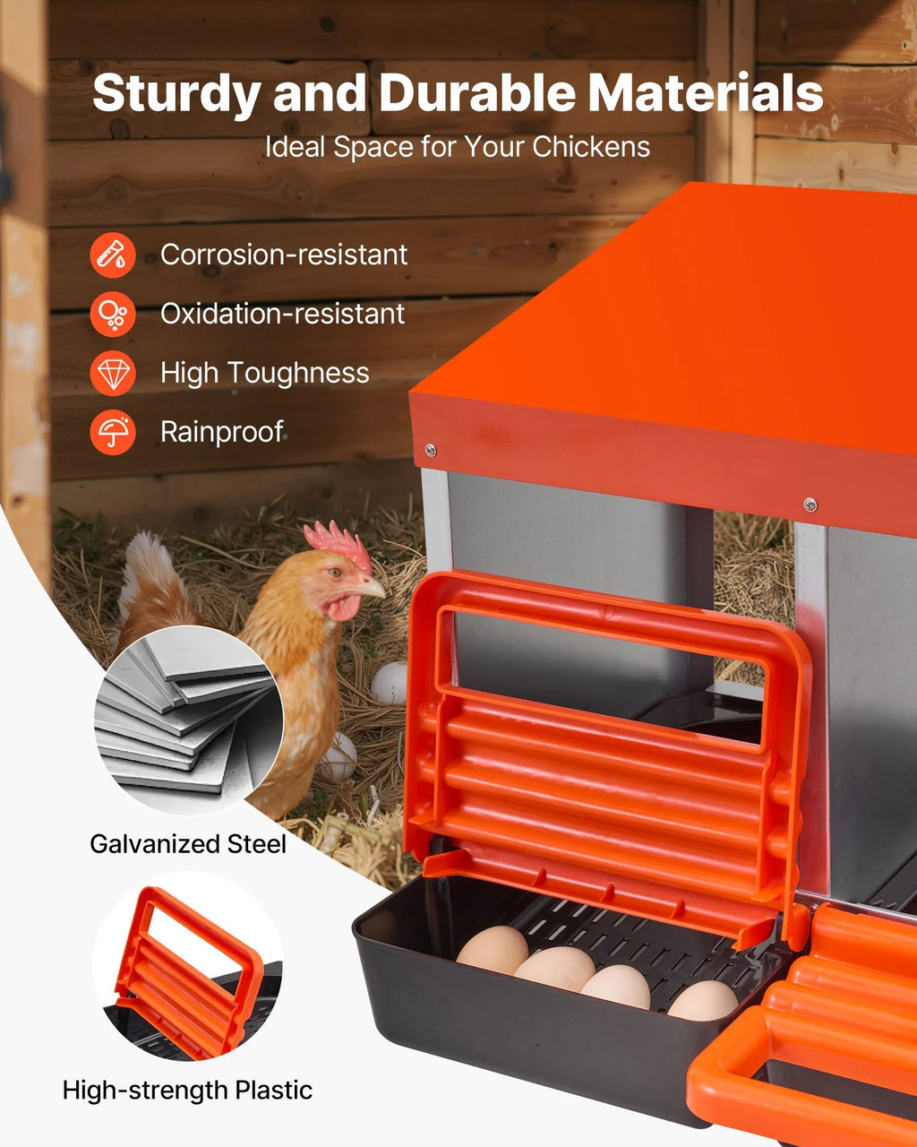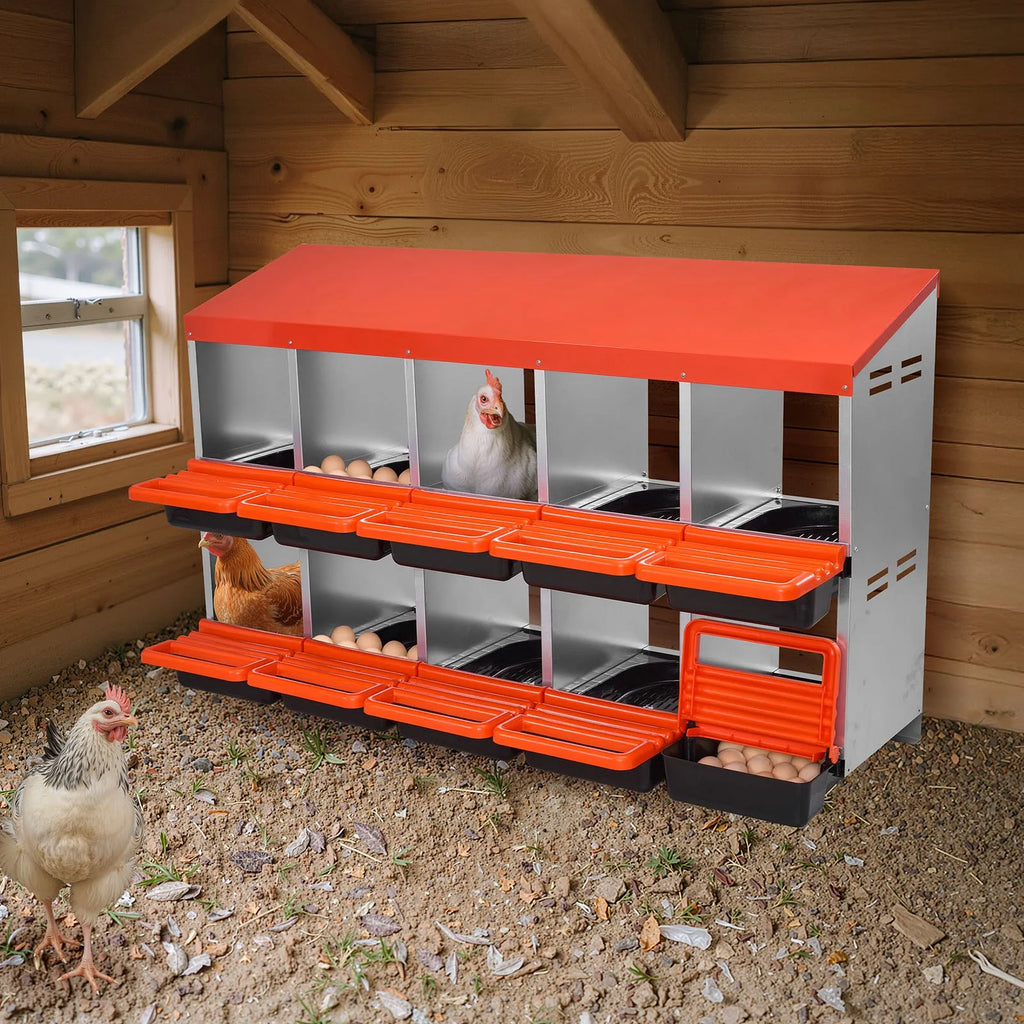VEVOR vistas dējējkaste ar 10 nodalījumiem, 30–45 collu stabila un korozijizturīga metāla dēšanas kaste ar slīpiem dēšanas nodalījumiem, drenāžas atverēm un atpūtas platformu — piemērota dažādām vistu šķirnēm