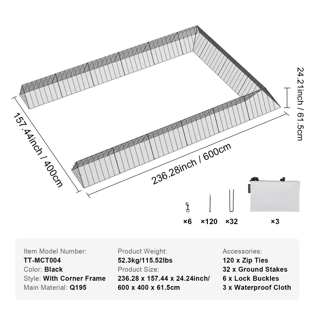 VEVOR vistas tuneļi, 600 × 400 × 61 cm (G × P × A) pārnēsājami āra tuneļi ar stūra rāmjiem, 2 gab., piemēroti vistām, pīlēm un trušiem