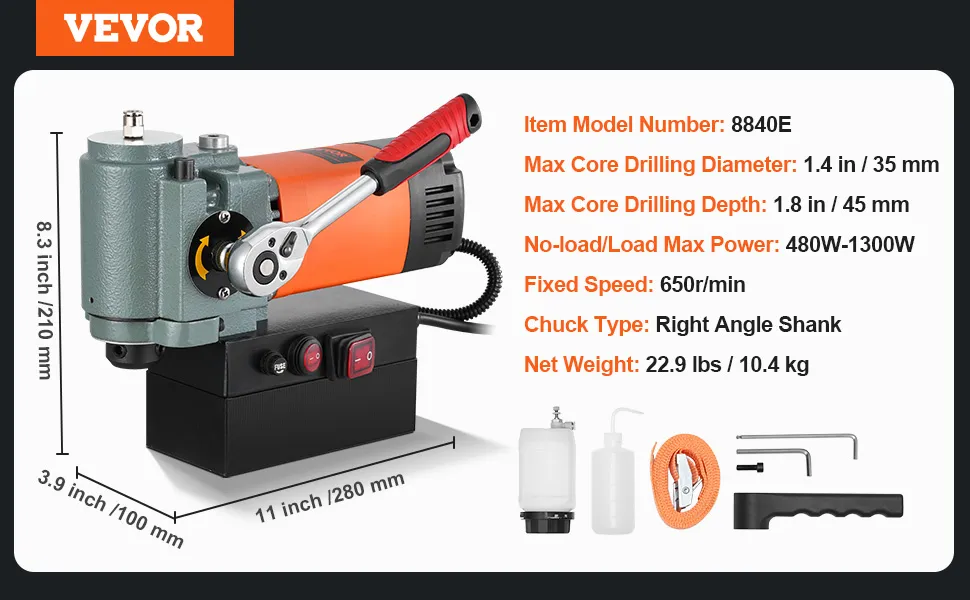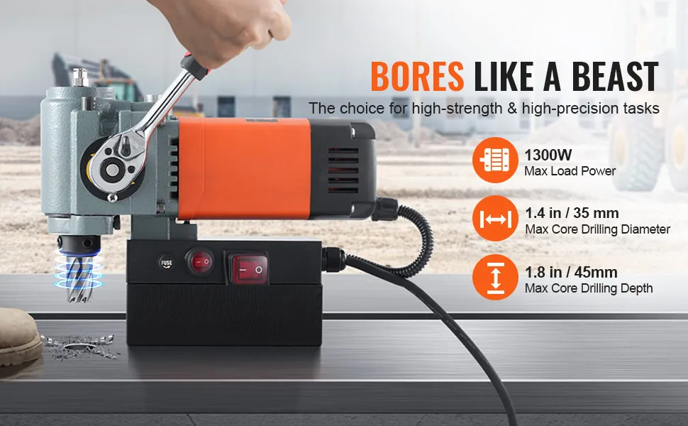 Ar maksimālo serdeņurbšanas diametru Ø35 mm un urbšanas dziļumu 45 mm šī magnētiskā urbjmašīna ir ideāli piemērota biezu metāla materiālu apstrādei. Jaudīgā griešanas veiktspēja samazina vairāku urbšanas reižu nepieciešamību, nodrošinot lielāku darba efektivitāti.