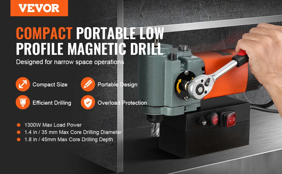 Pārslodzes aizsardzība efektīvi novērš bojājumus pārmērīgas slodzes gadījumā, bet dzesēšanas ierīce uztur zemu temperatūru intensīvas darbības laikā, pagarinot urbjmašīnas kalpošanas laiku. 10 000 N magnētiskā pievilkšanas jauda nodrošina papildus drošību darbības laikā. Mēs rūpējamies par to, lai jūsu darba vide būtu efektīva, droša un stabila.