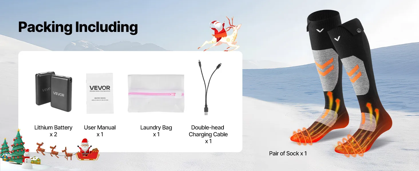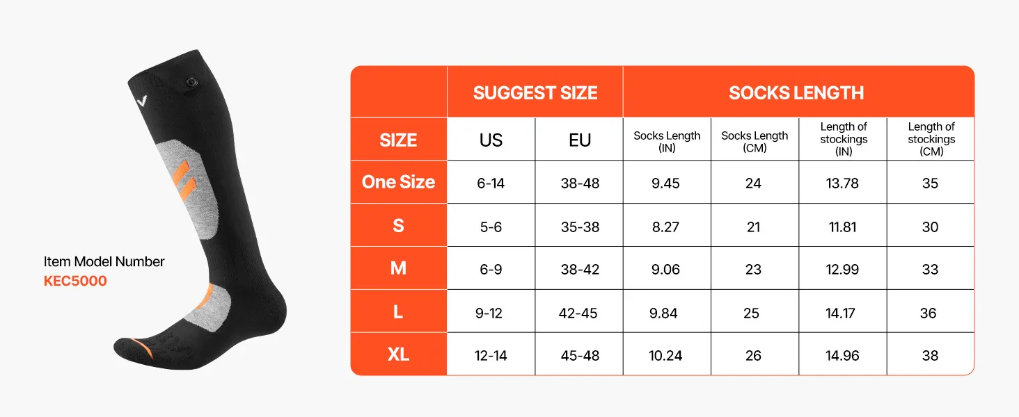 XL_VEVOR apsildāmās zeķes, XL izmērs, ar 5000 mAh uzlādējamu akumulatoru, 4 apsildes līmeņiem un lietotnes vadību; piemērotas sievietēm un vīriešiem medībām, izjādēm, kempingam un pārgājieniem