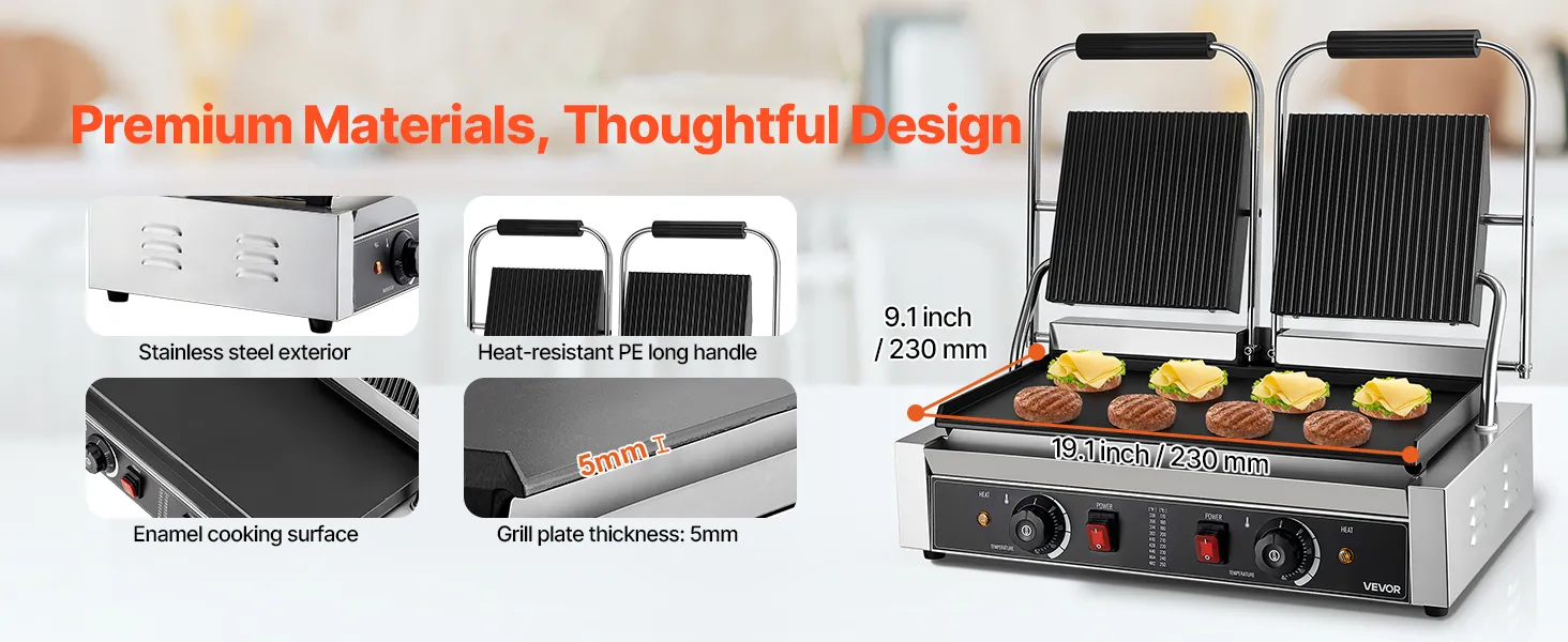 Šis panini preses sviestmaižu gatavotājs ļauj vienlaicīgi gatavot vairākus ēdienus, padarot to ideāli piemērotu dārzeņu, gaļas, siera, olu kultenes, panini sviestmaižu, burgeru, vistas, pilnvērtīgu brokastu, steiku un citu ēdienu pagatavošanai.