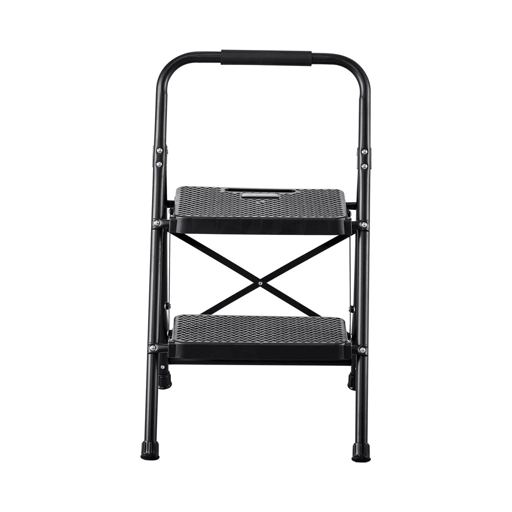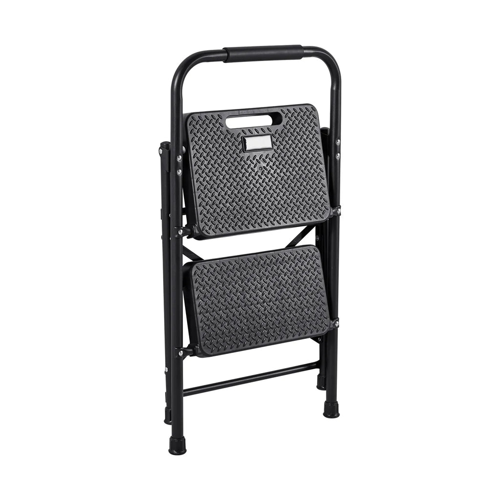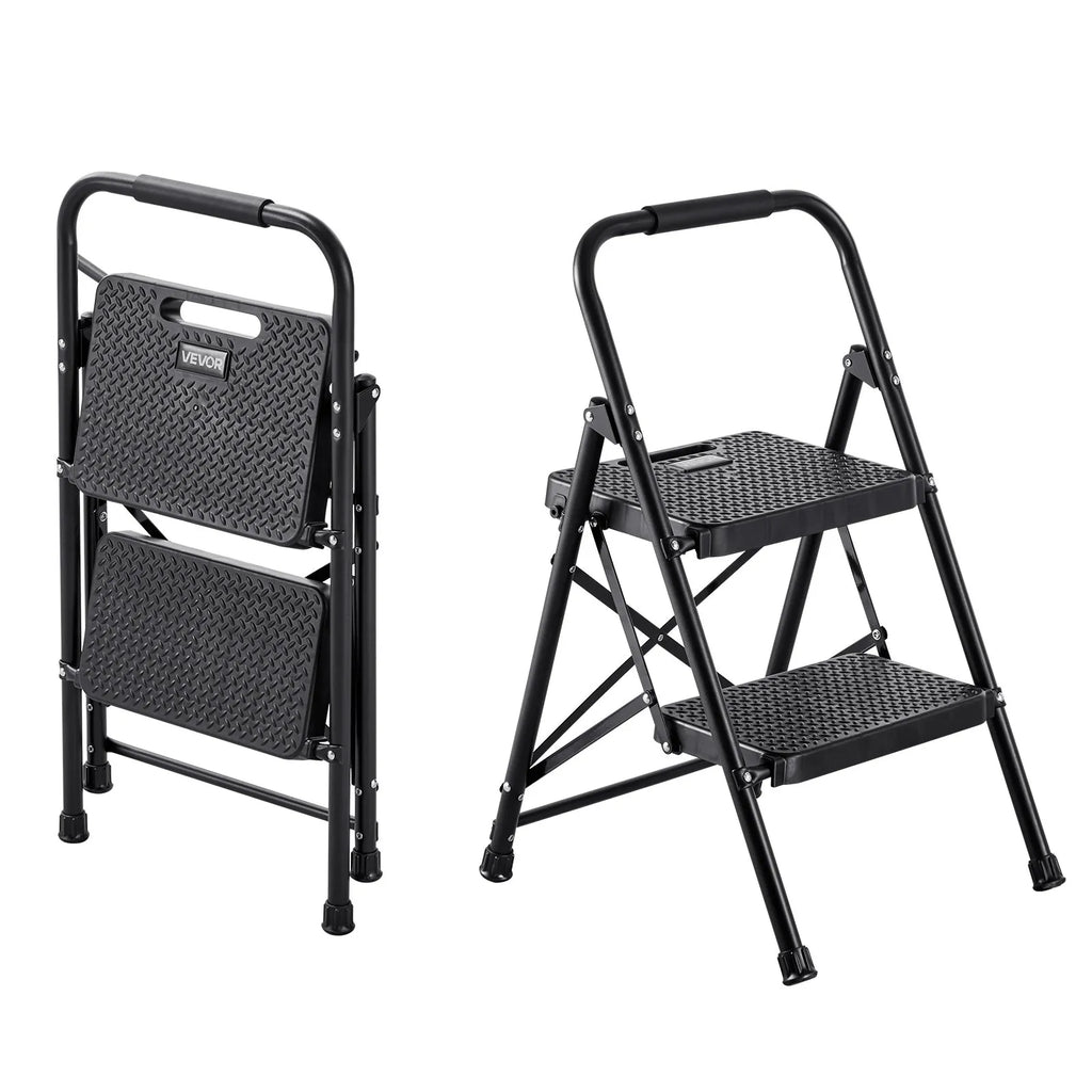 VEVOR 2 pakāpju saliekamās kāpnes ar platu pretslīdes pakāpienu un ērtu rokturi, pārnēsājamas tērauda kāpnes ar 272 kg nestspēju, lietošanai virtuvē, mājās un birojā, melnas