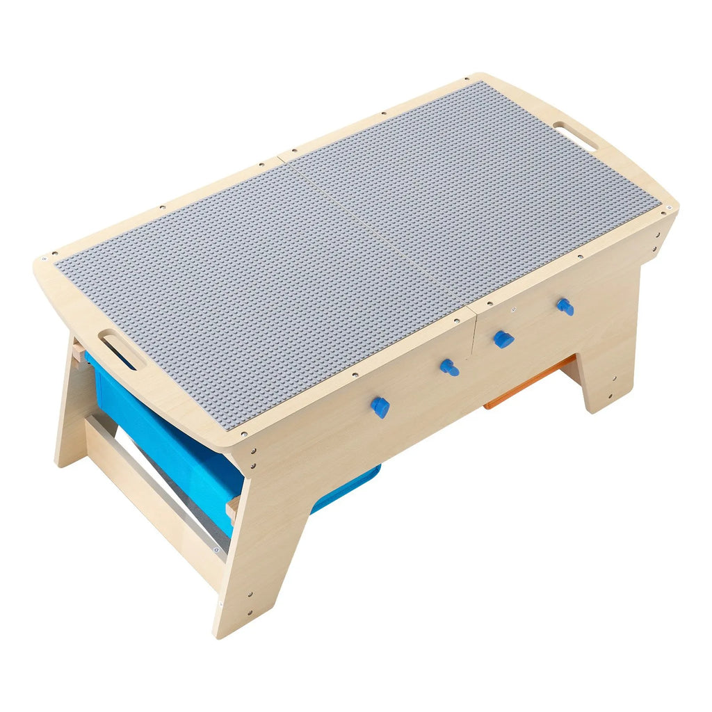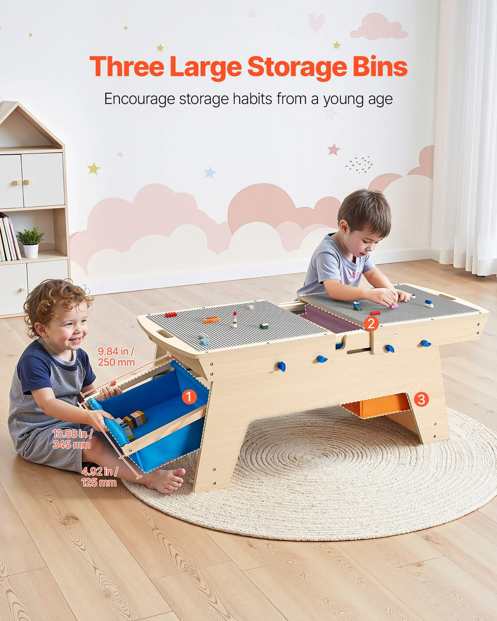 VEVOR bērnu divpusējais koka aktivitāšu galds ar 200 būvkociņiem un 3 uzglabāšanas kastēm, daudzfunkcionāls rotaļu galds bērniem no 3+ gadiem, ar lielu uzglabāšanas vietu, piemērots zēniem un meitenēm, dabīga koka krāsā