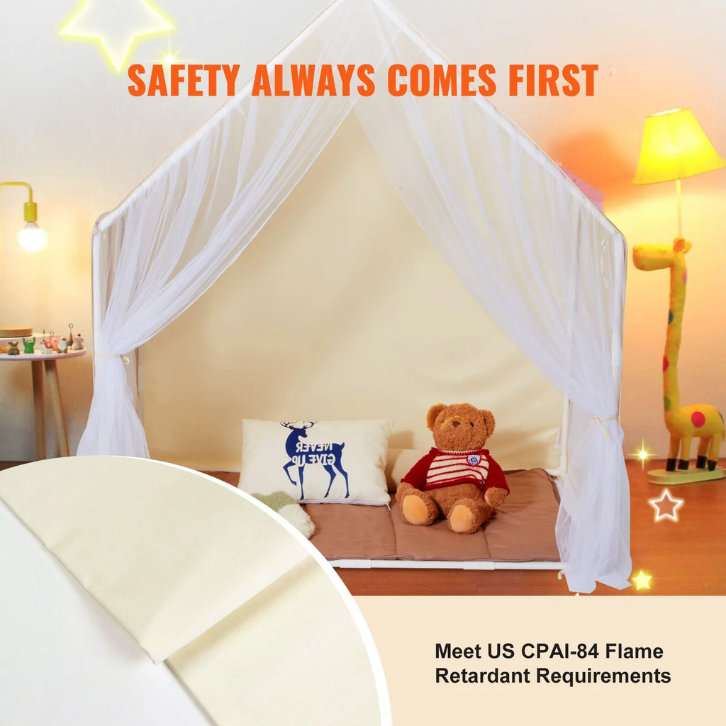 VEVOR bērnu rotaļu telts ir izgatavota no augstas kvalitātes materiāliem. “Peach skin” audums un 19 mm rāmis nodrošina komfortu un izturību. Telts ir noturīga pret deformāciju un sabrukšanu, tāpēc kalpo ilgi un droši. Tā atbilst ASV CPAI-84 uzliesmojamības prasībām un ir CPC sertificēta, kas garantē bērna drošību. Šī rotaļu telts ir uzticama izvēle vecākiem un piemērota gan iekštelpām, gan āra spēlēm. Jūsu bērni varēs izbaudīt savu privāto telpu bez raizēm — konstrukcija iztur aktīvu rotaļu slodzi.