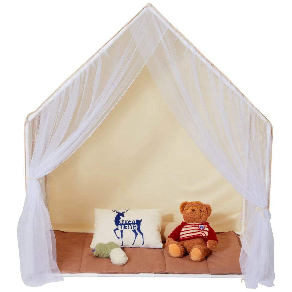 Šī rotaļu telts ir plaša un ērta, tās izmēri ir 134 × 92 × 153 cm, un tajā vienlaikus var spēlēties 2–3 bērni. Mitrumizturīgais paklājiņš nodrošina papildu komfortu un aizsardzību, uzturot telts grīdu tīru un sausu. Karājamā lampiņa rada mājīgu noskaņu, padarot telti ideāli piemērotu lasīšanai, rotaļām vai atpūtai. Telts nodrošina pietiekami daudz vietas brīvai kustībai un ir lieliska izvēle gan mājās, gan dārzā.