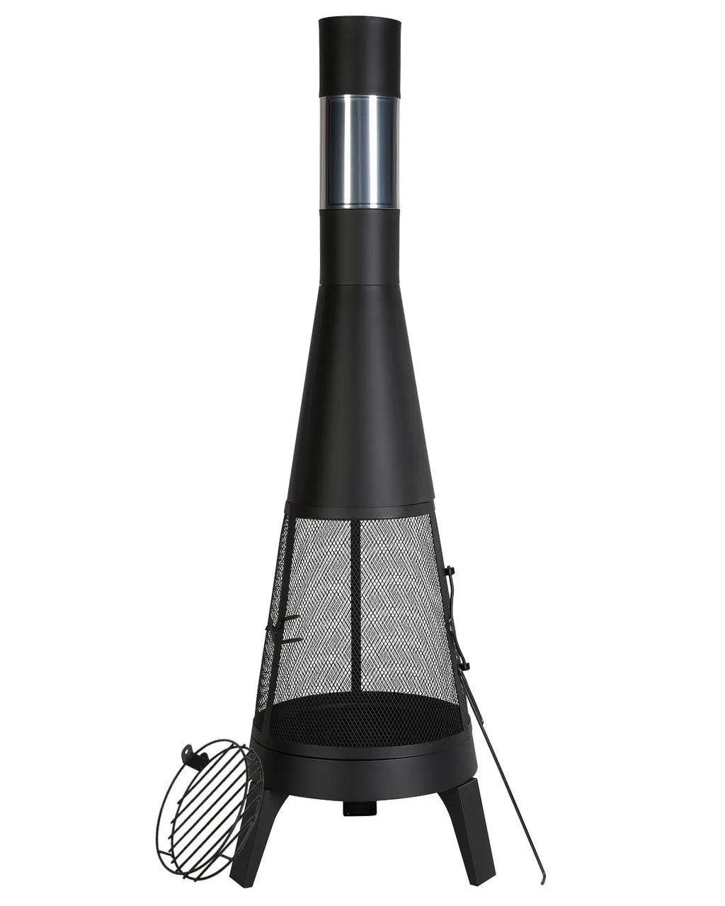 Šī čimineja ir izstrādāta ērtai lietošanai – ar ātru montāžu un vieglu tīrīšanu. Neatkarīgi no tā, vai gatavojat ēdienu vai sildāties ārā, komplektā ir viss nepieciešamais: skursteņa vāks, grila reste, aizbīdnis, pelnu režģis, pelnu paplāte un uguns kruķis, nodrošinot ērtu un patīkamu lietošanu.