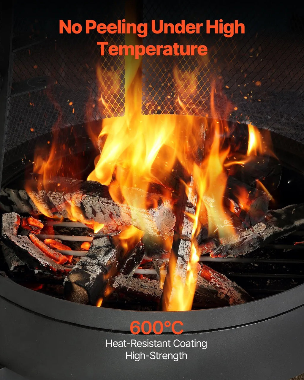 Āra čiminejai ir augstas temperatūras pārklājums, kas iztur līdz 600 °C, un izturīga dzelzs konstrukcija. Tā novērš krāsas lobīšanos intensīvas karsēšanas laikā, nodrošinot ilgstošu un uzticamu lietošanu ārā.