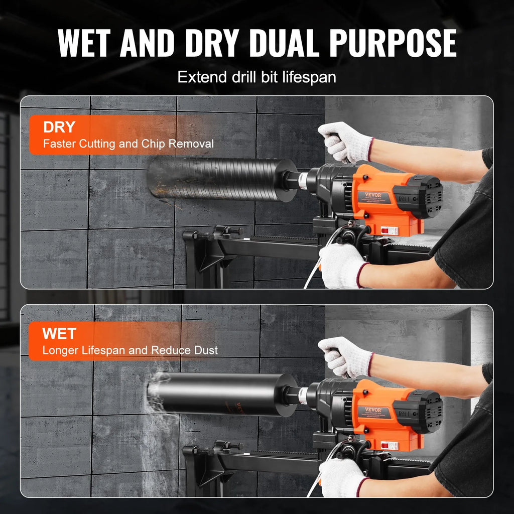 Serdes urbšanas iekārta atbalsta gan sauso, gan mitro urbšanas režīmu. Sausā urbšana ir piemērota ātriem darbiem sausā vidē vai augstas efektivitātes situācijās, savukārt mitrā urbšana samazina putekļus un siltuma veidošanos, uzlabojot drošību un darba komfortu.