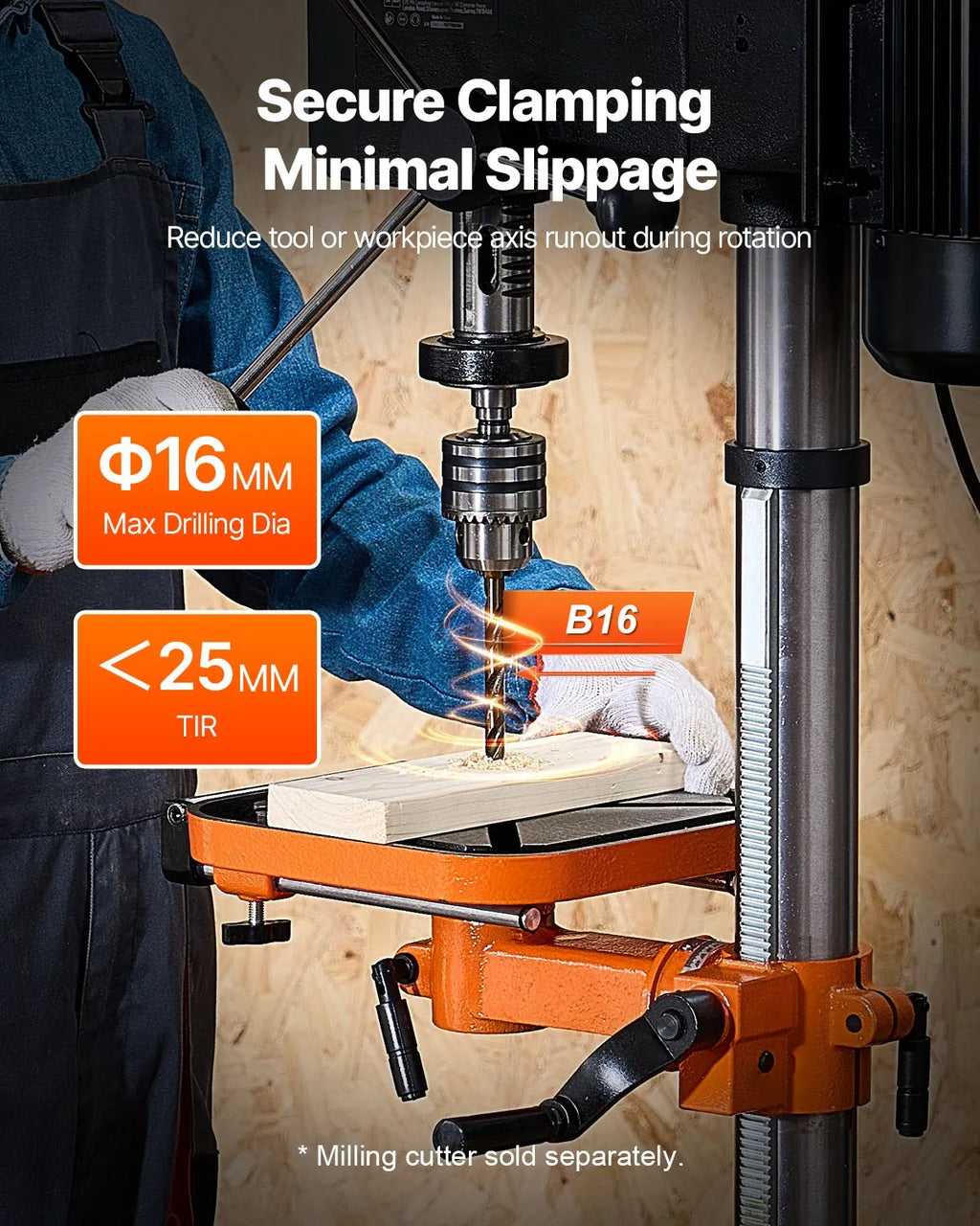 VEVOR galda urbjmašīna 304,8 mm, 750 W, regulējams ātrums 340–2200 apgr./min, noliecams darba galds 0–45°, LED darba apgaismojums, X-Ray pozicionēšana koka un metāla urbšanai