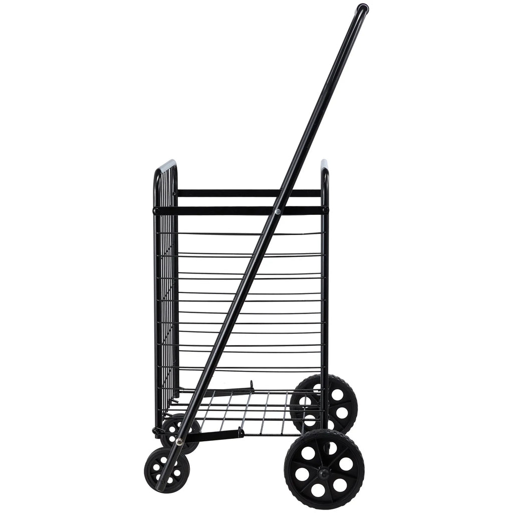 Noguris no atkārtotas smagu priekšmetu nešanas? Šie iepirkumu ratiņi iztur līdz 40,8 kg slodzi, pateicoties izturīgam Q195 tērauda rāmim. Tie salokās plakani ērtai uzglabāšanai automašīnas bagāžniekā vai skapī, un lielie aizmugurējie riteņi nodrošina vienmērīgu ripošanu pa nelīdzenām virsmām.