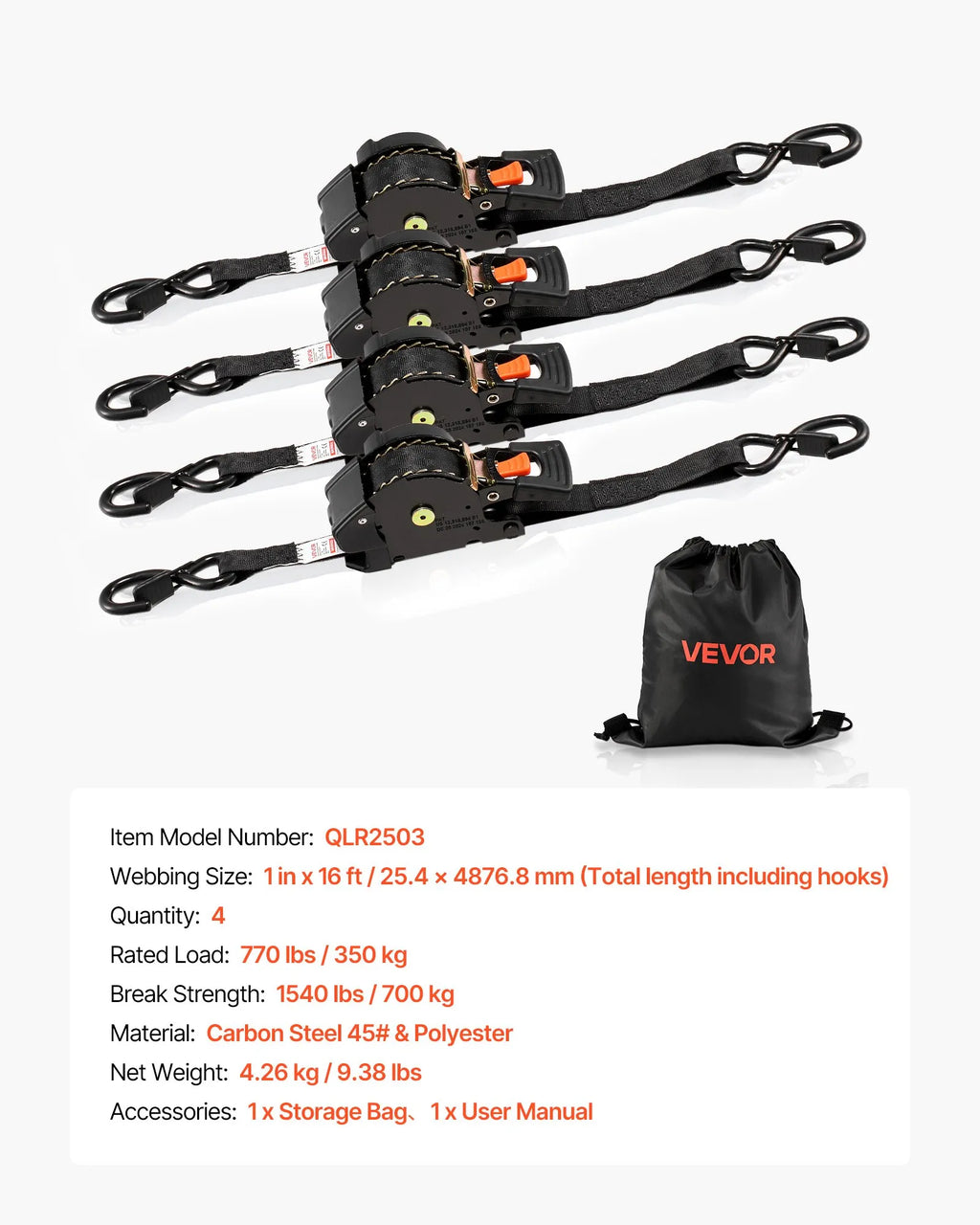 Augsta kravnesība: Sprūdrata stiprinājuma siksna nodrošina aptuveni 350 kg darba slodzi un 700 kg pārrāvuma izturību, saglabājot kravu droši nostiprinātu bremzēšanas un nelīdzenu ceļu laikā. Piemērota velosipēdiem, instrumentiem un apjomīgām kravām.