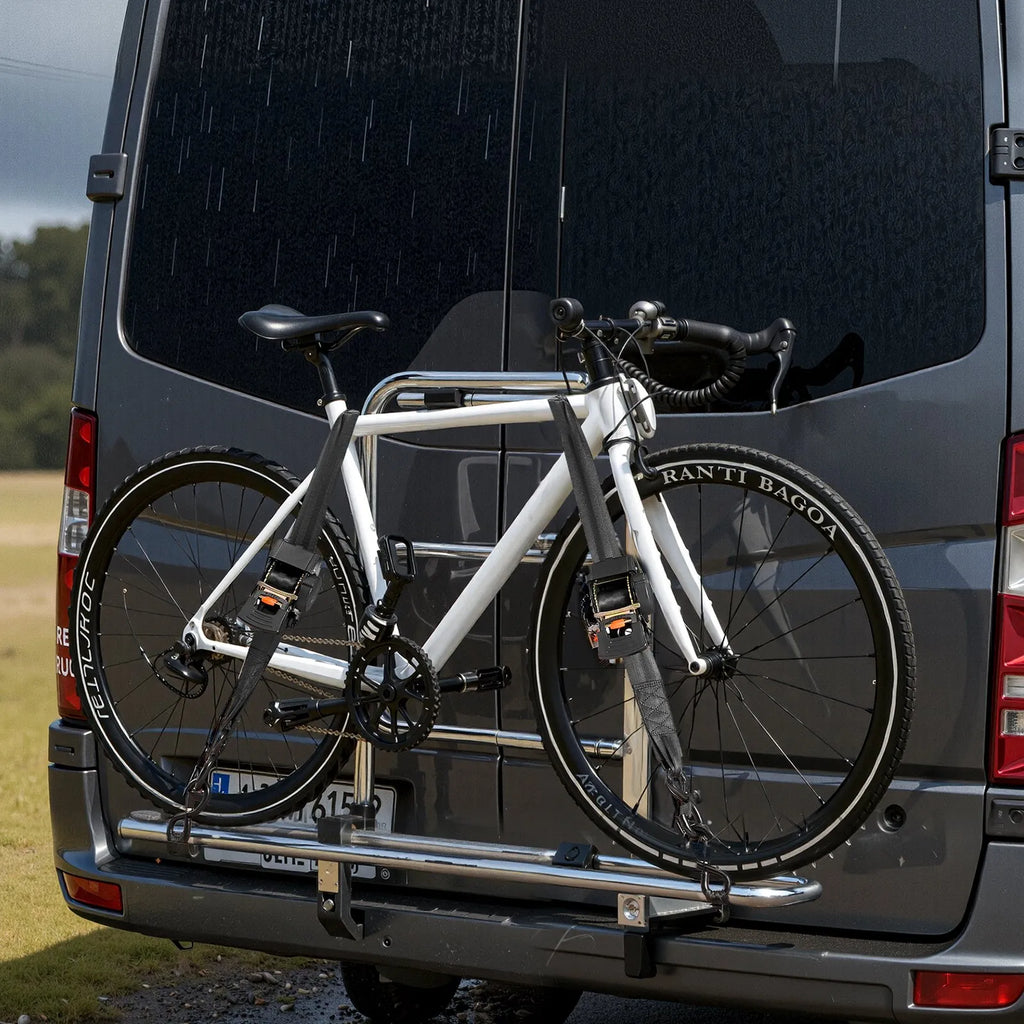 Augsta kravnesība: Sprūdrata stiprinājuma siksna nodrošina aptuveni 459 kg darba slodzi un 1375 kg pārrāvuma izturību, saglabājot kravu droši nostiprinātu bremzēšanas un nelīdzenu ceļu laikā. Piemērota velosipēdiem, instrumentiem un apjomīgām kravām.