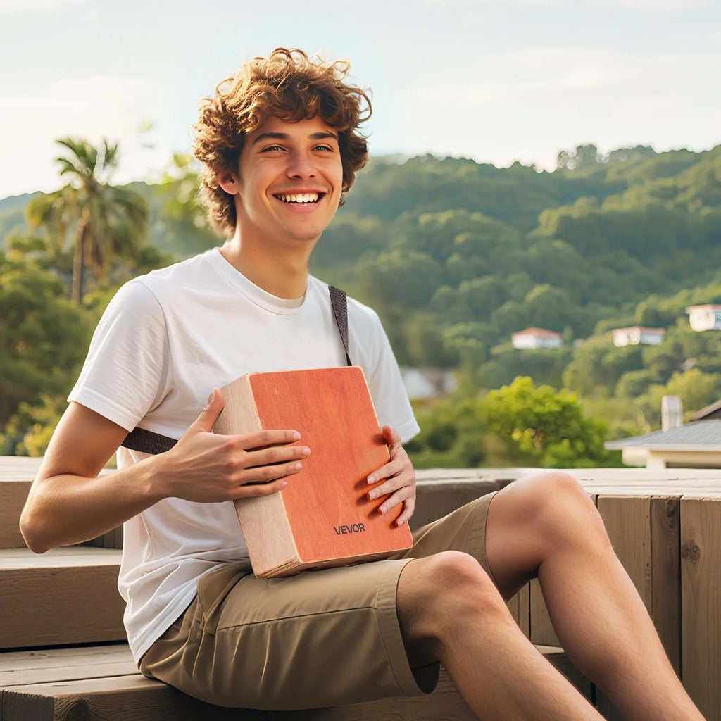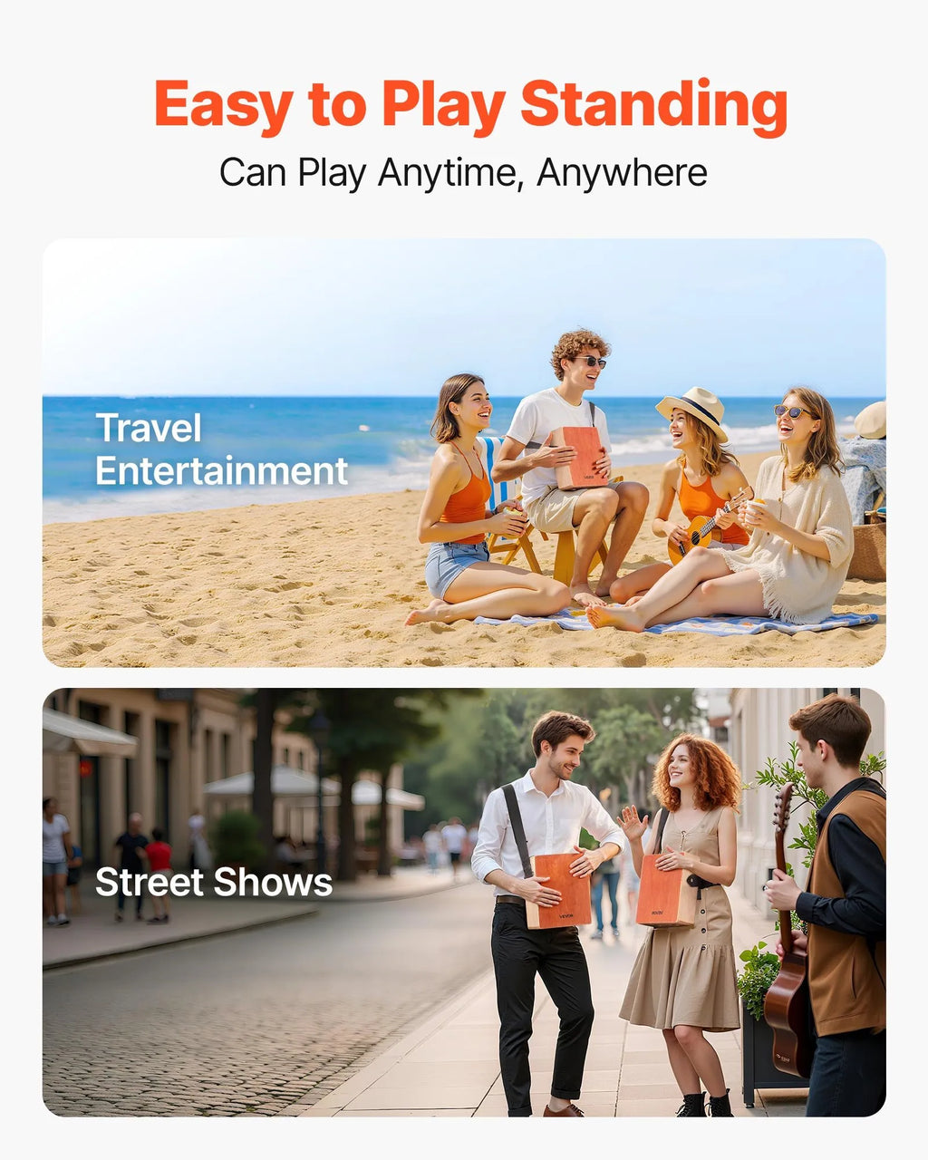 Spēlē jebkur — viegli un ērti: Komplektā iekļauta regulējama plecu siksna brīvroku ērtībai. Ideāli piemērota ielu muzikantiem, āra pasākumiem vai ceļošanai — cajon bungas viegli ņemt līdzi.