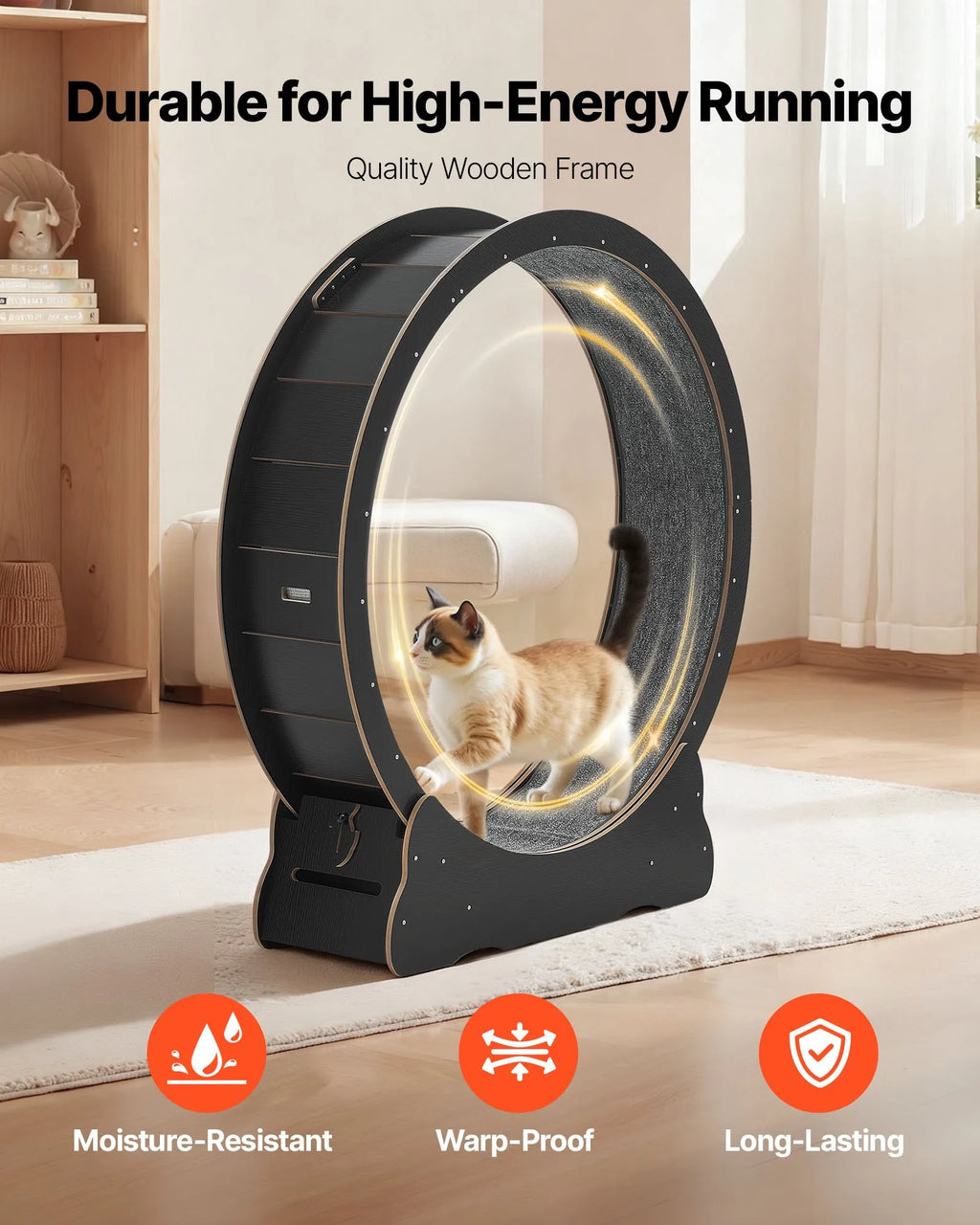 Šis kaķu skriešanas ritenis sniedz vairāk prieka un kustību telpās dzīvojošiem kaķiem, palīdzot tiem saglabāt aktivitāti, labu veselību un enerģiju.