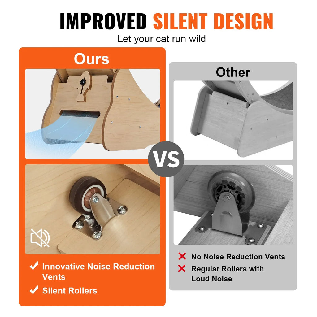 VEVOR koka kaķu skriešanas ritenis ar noņemamu paklāju un rotaļlietu, 110 cm liels trenažieris skriešanai, iešanai un treniņiem telpās, piemērots vairumam kaķu, dzeltens