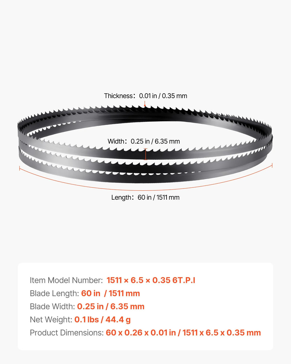 Modeļa numurs: 1511 × 6,35 × 0,35 mm, 6 TPI
