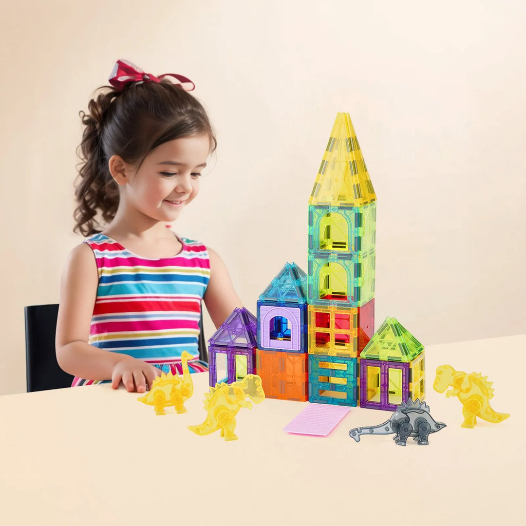 VEVOR magnētisko kluču komplekts, 56 gab., dzīvnieku un dinozauru tematika; magnētiskie būvkluču elementi bērniem, STEM sensorā izglītojošā rotaļlieta bērniem no 3 gadu vecuma