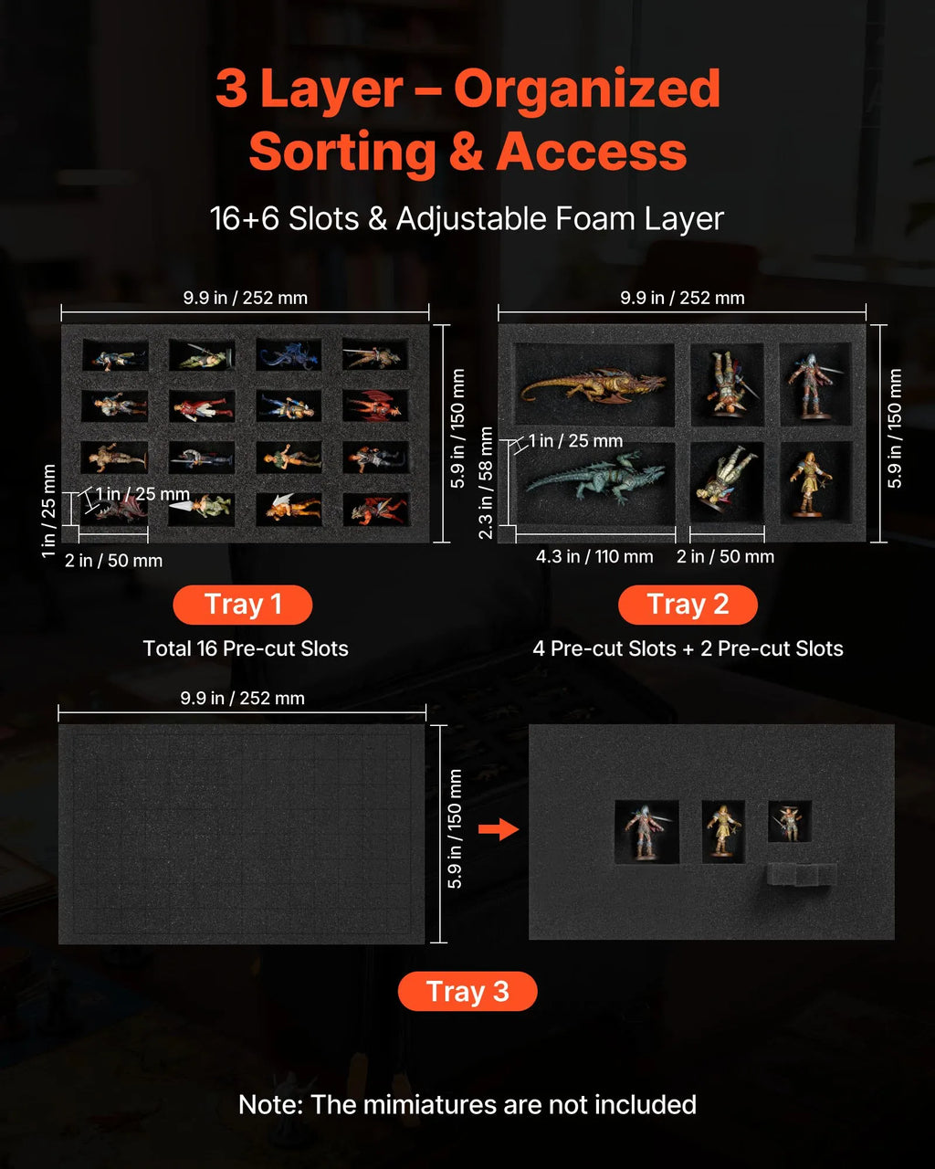 VEVOR miniatūru figūriņu uzglabāšanas un pārnēsāšanas soma, ietilpība līdz 58 kājnieku miniatūrām, transportēšanas soma ar rokturi un regulējamu pleca siksnu, 3 putu slāņi lielai ietilpībai (miniatūras nav iekļautas)