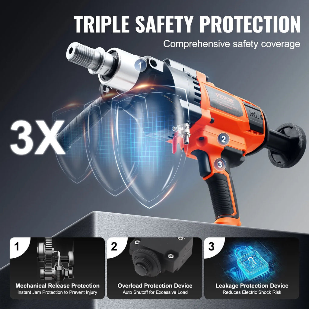 VEVOR rokas serdes urbjmašīna, urbšanas diametrs 2,03–18 cm, 2600 W, serdes urbšanas iekārta ar maisīšanas funkciju